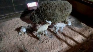 おっと、ここで(朝7時)、先ほど生まれたばかりの羊の3つ子の情報がマツダお姉さんから入りました!!↓