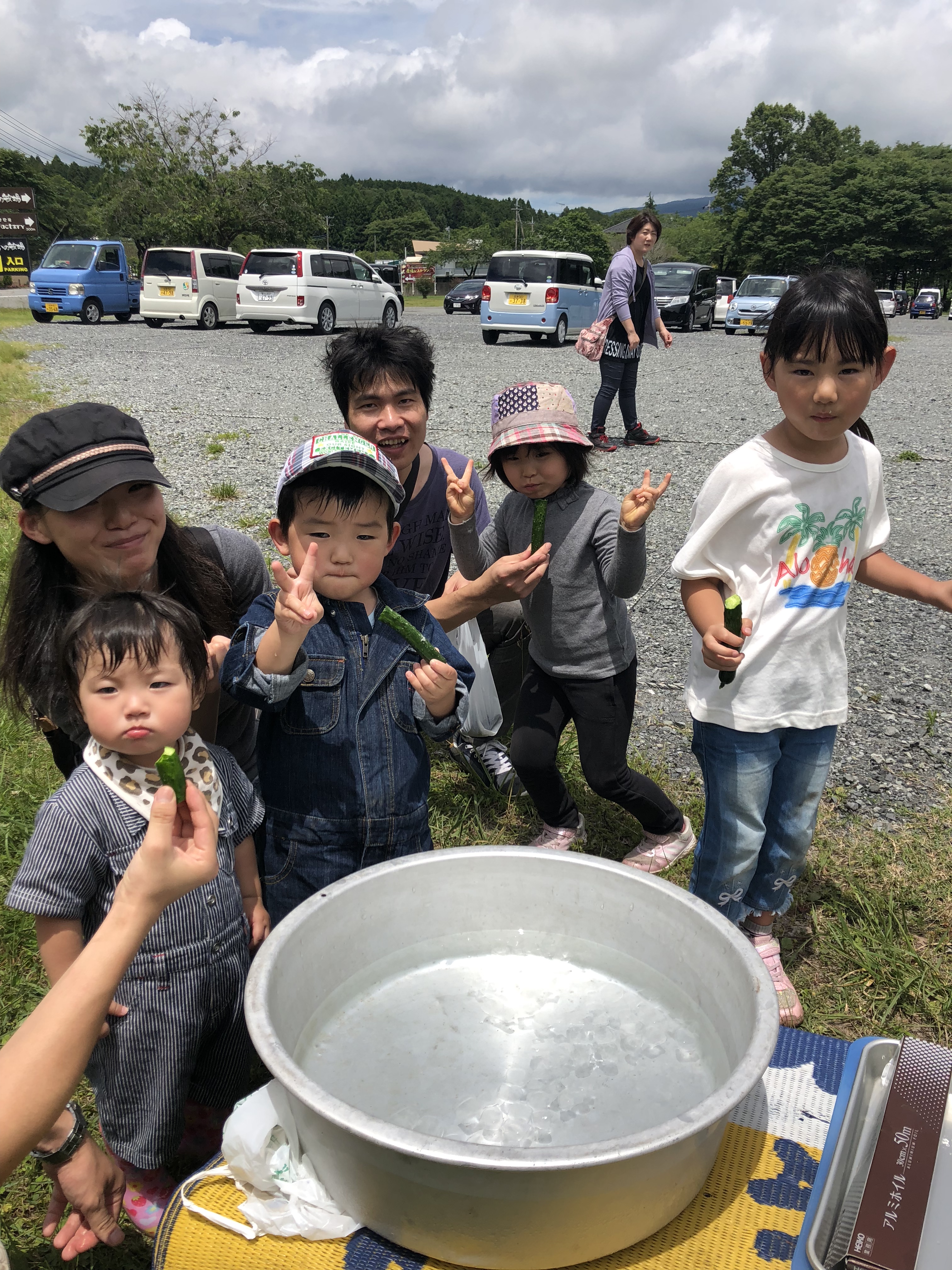 ※11:30のジャガイモ掘り(乳しぼり前受付)に参加した方だけ、続けて開催できゅうり+ニンニクもやってます。