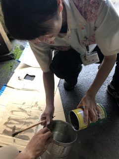 「ハケの洗い方指導」