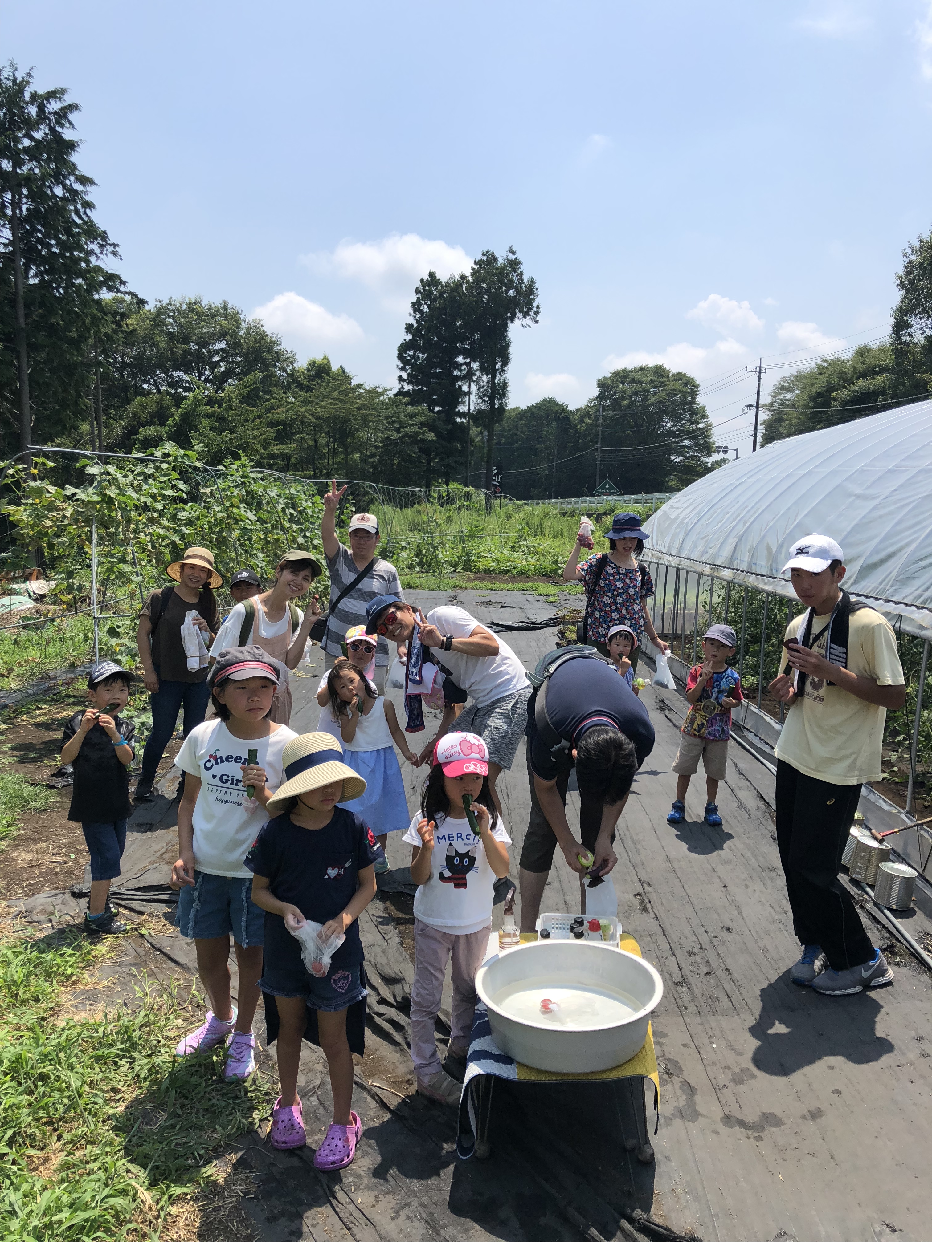 11:30からは「シソの葉収穫・キュウリもぎたべ・トマトもぎたべ・カブトムシの捕り方解説」!