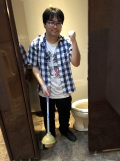 先日、トイレのつまりの直し方を2人のスタッフに見せて教えました。