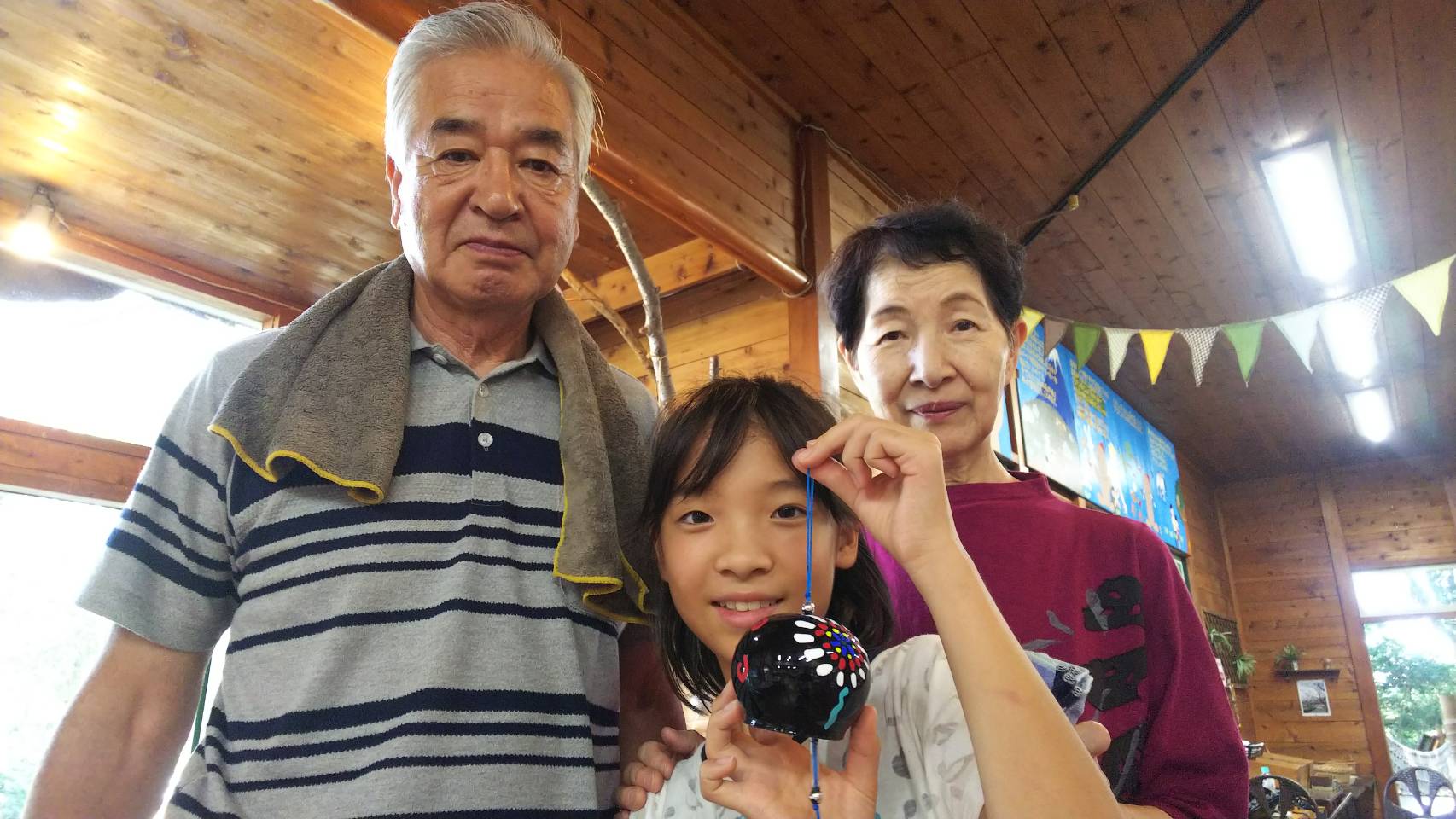 おじいちゃんとおばあちゃんと一緒に、カナちゃんは花火の情景を描き上げました!