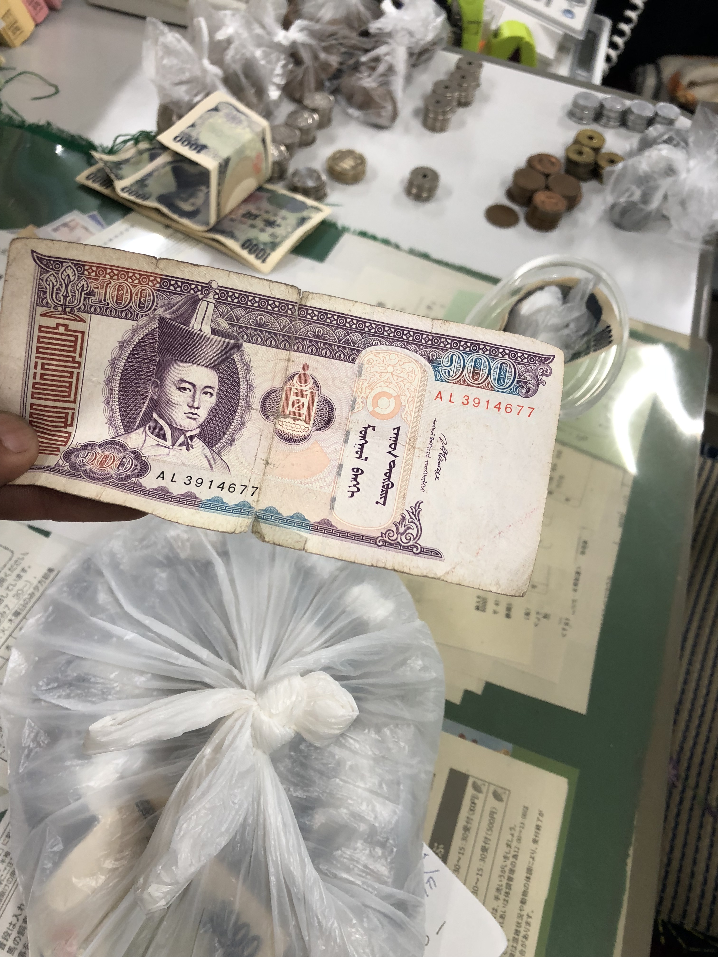 まさかモンゴルの紙幣が入っているとは・・・