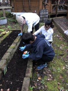 レストランのみんなが、ニンジンやホウレン草のタネをまいておりまして。