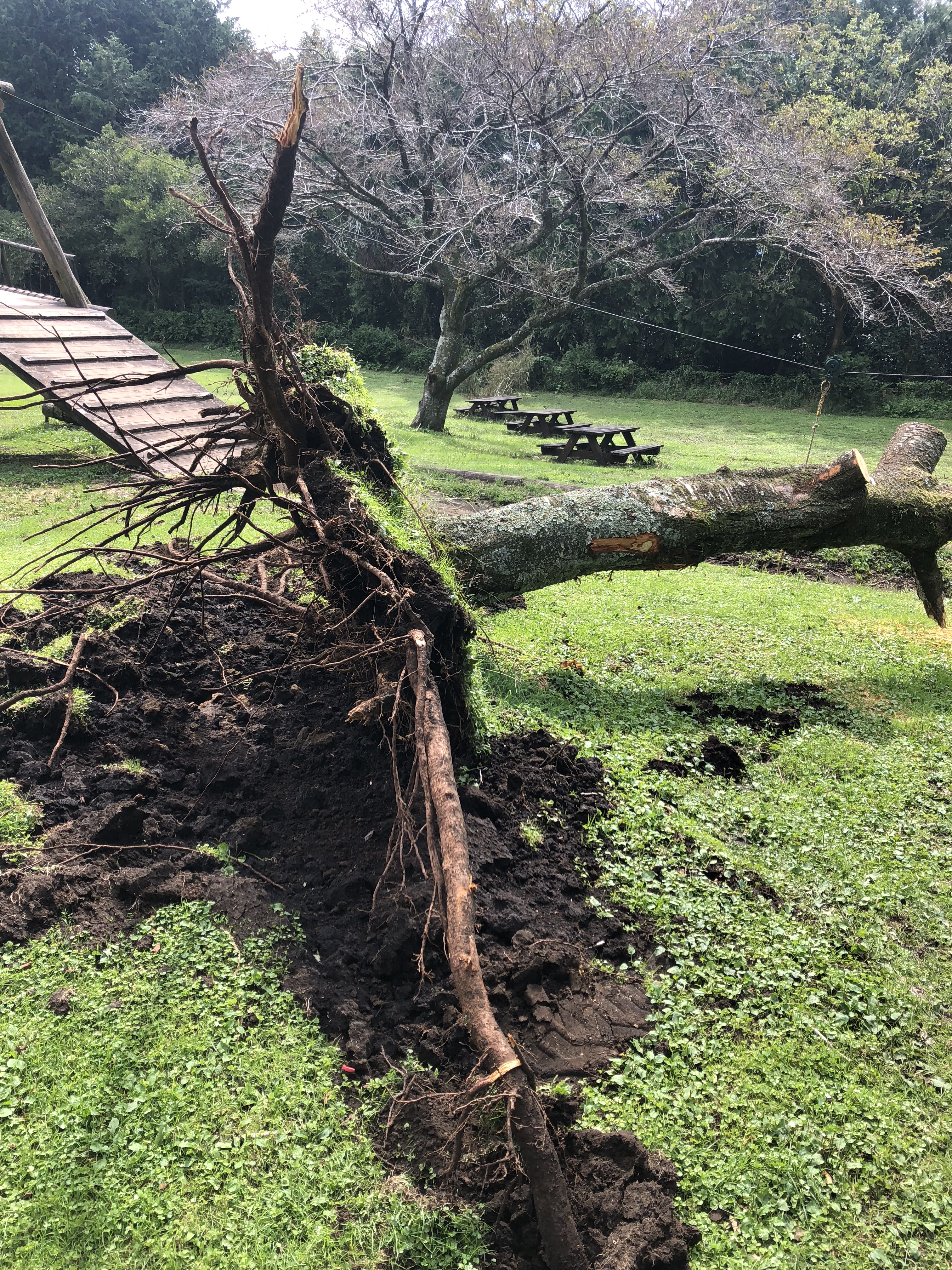 海の見える丘のアスレチックで桜の大木がひっくり返っており・・・