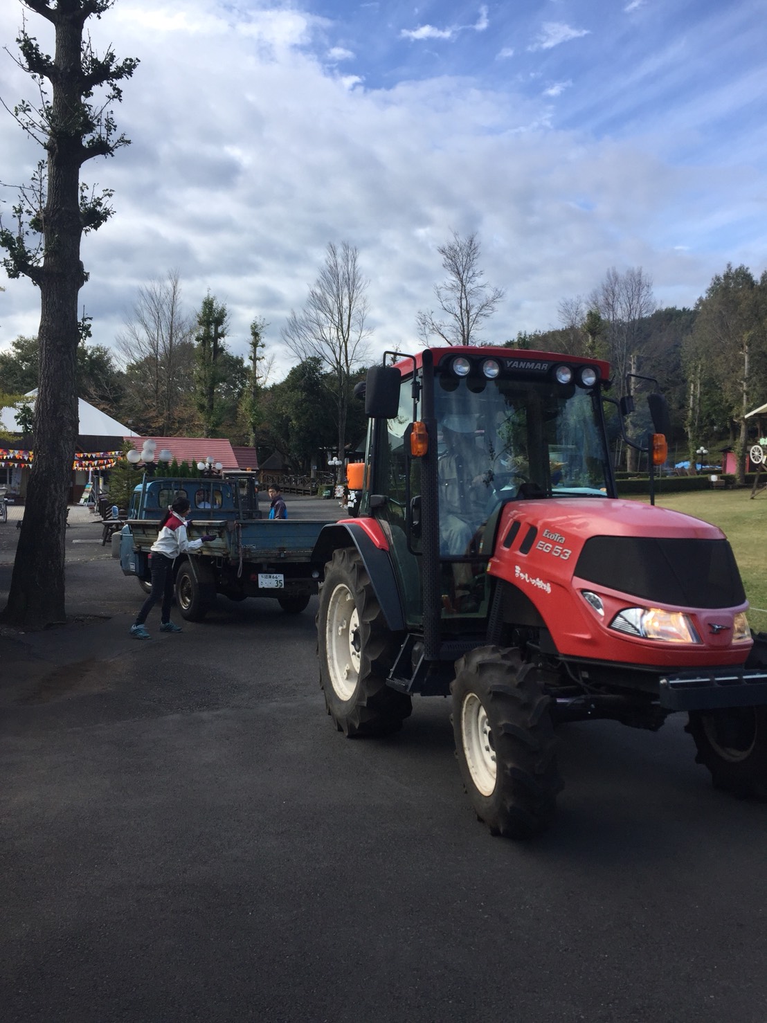 ハロウィンの入り口を飾っていたオート3輪を、けん引しながら仕舞う。