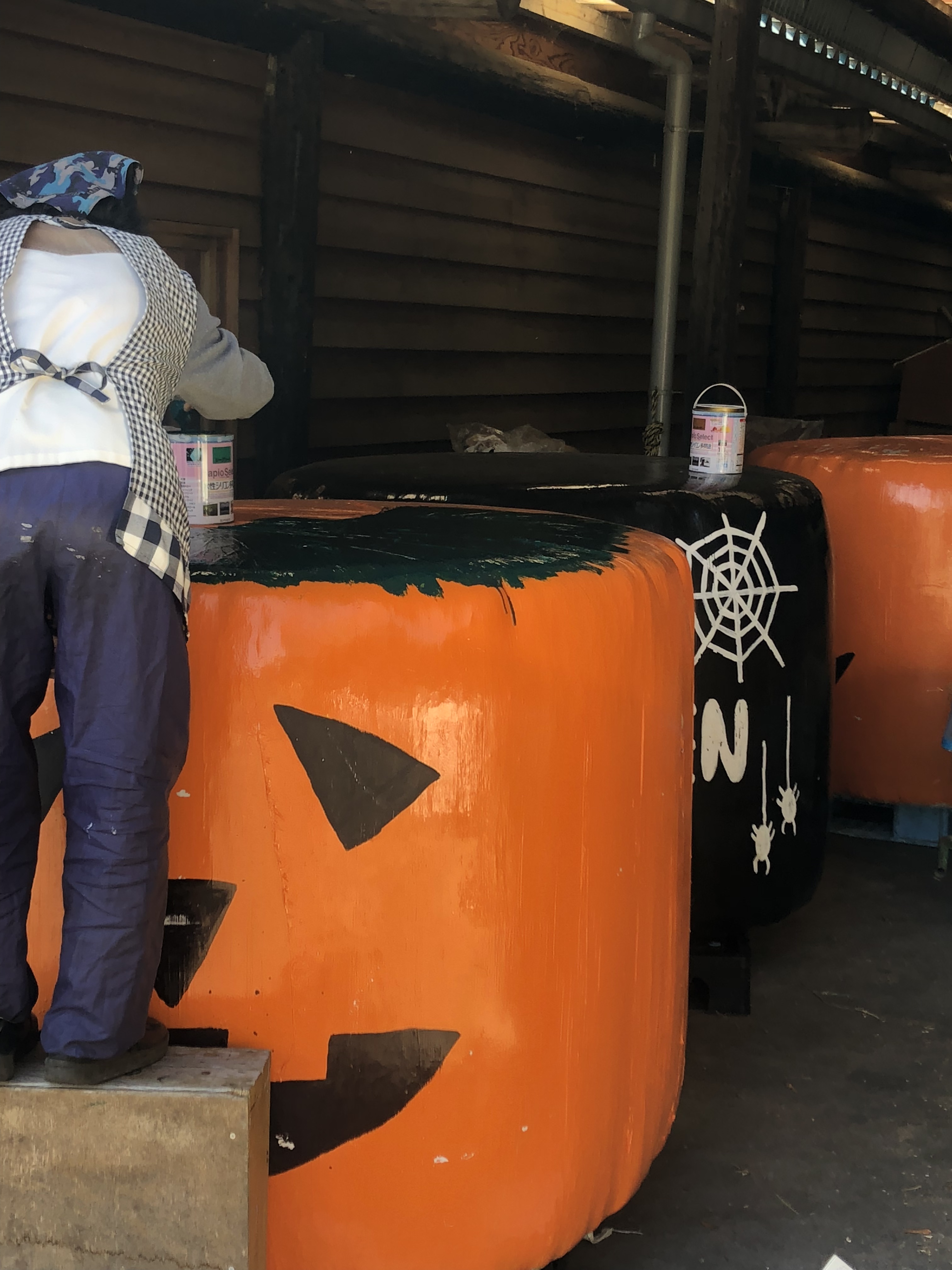 ハロウィン柄だった、サイレージ(草の漬物:牛の餌)を、違う色で塗る!