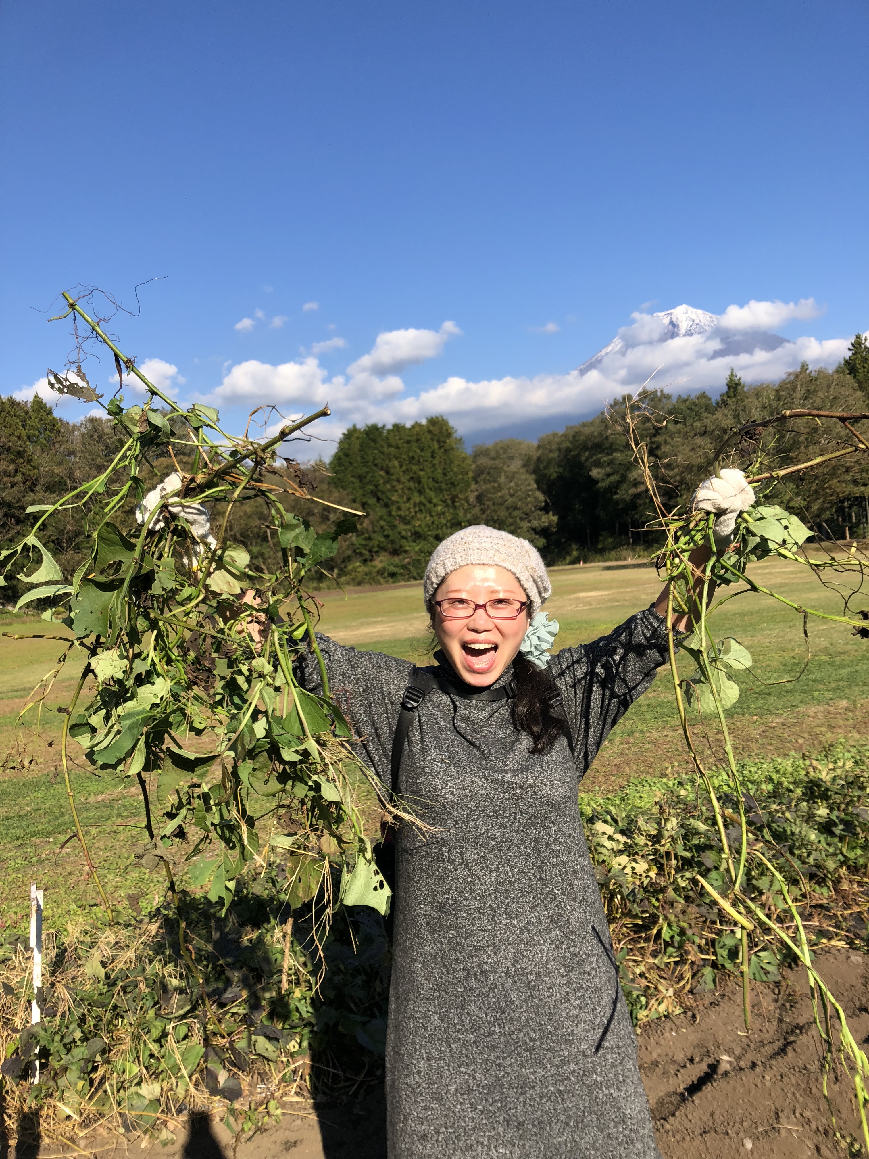 「馬のイーグル君に食べてもらいたい!」という熱意でモリモリゲットできたお姉さん、