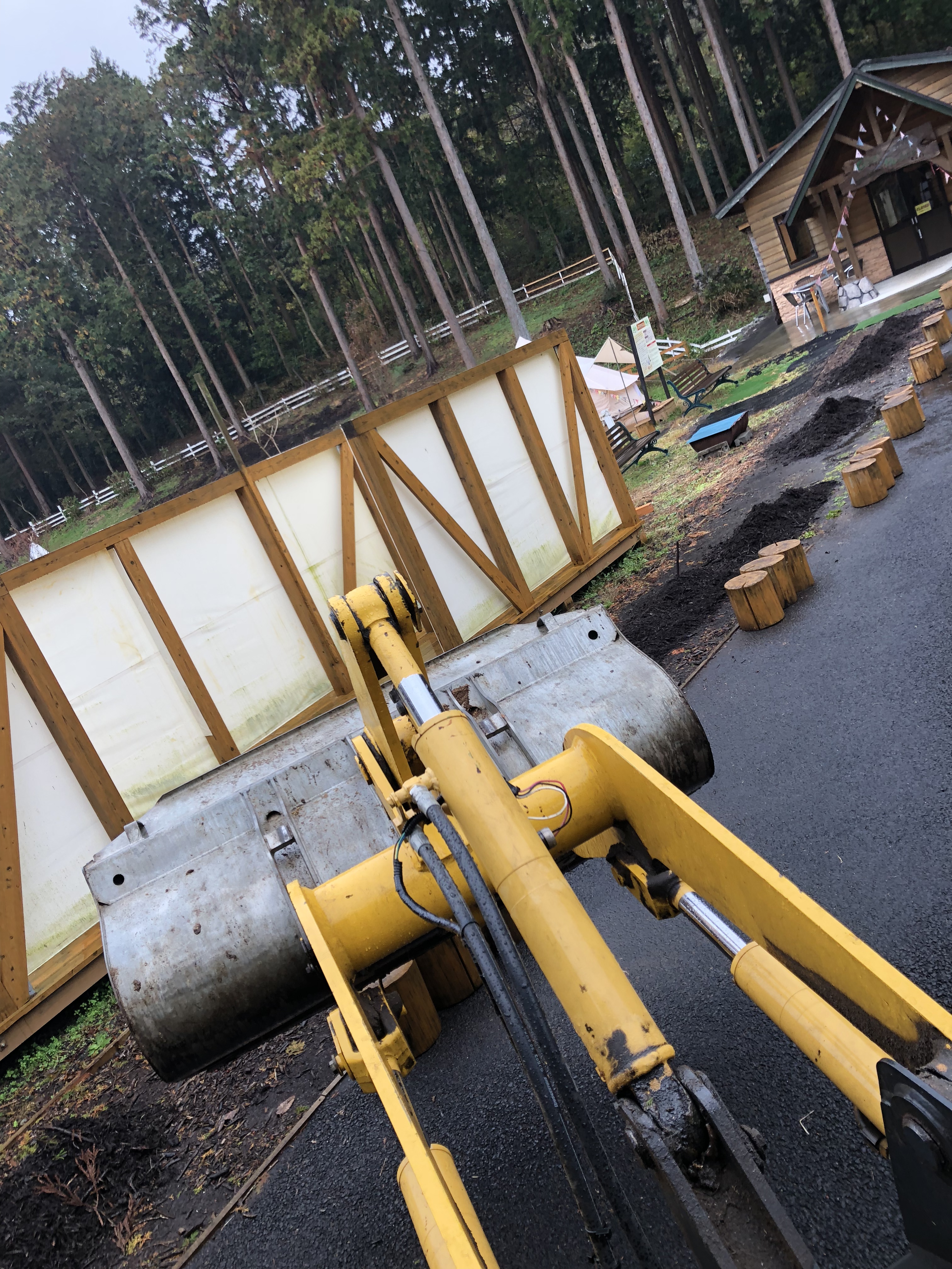 森のかくれがの正面道のウッドチップが減ったので足してみる。