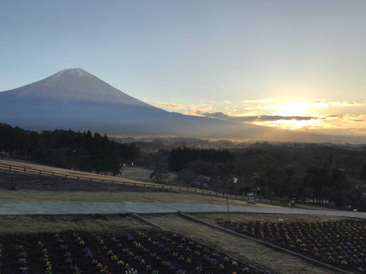 早朝。社長が場内を掃除しながら送ってくれたのは富士山からの日の出。