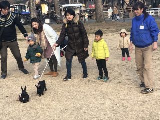 引っ張り厳禁。「ウサギがダッと走ったら、ヒモはどんどん放してくださいね」という方式。抱っこの仕方も、最も動物負担が少ないやさしい方法をお伝えしております。