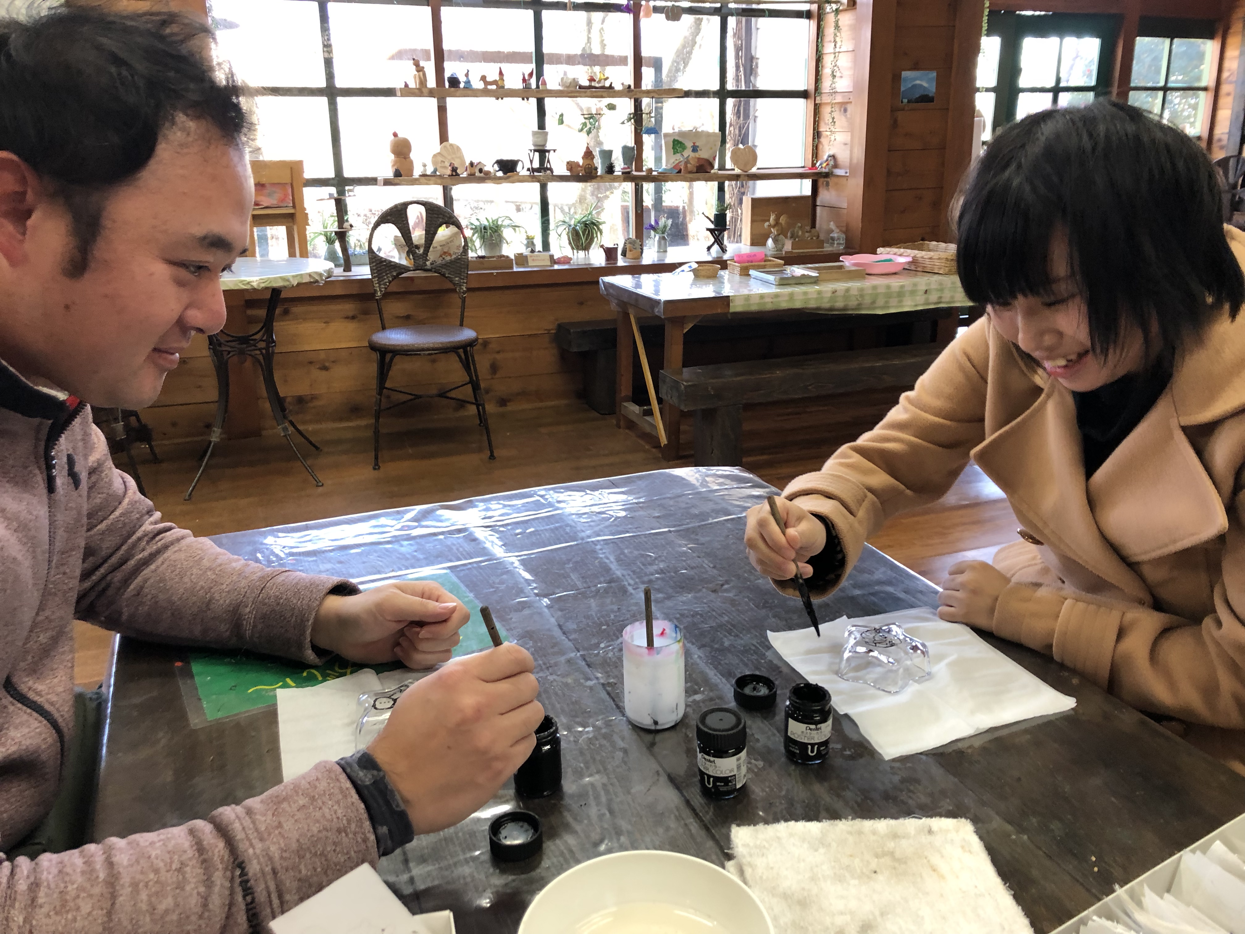 サンドブラスト(すりガラスの絵を描くアート)体験。