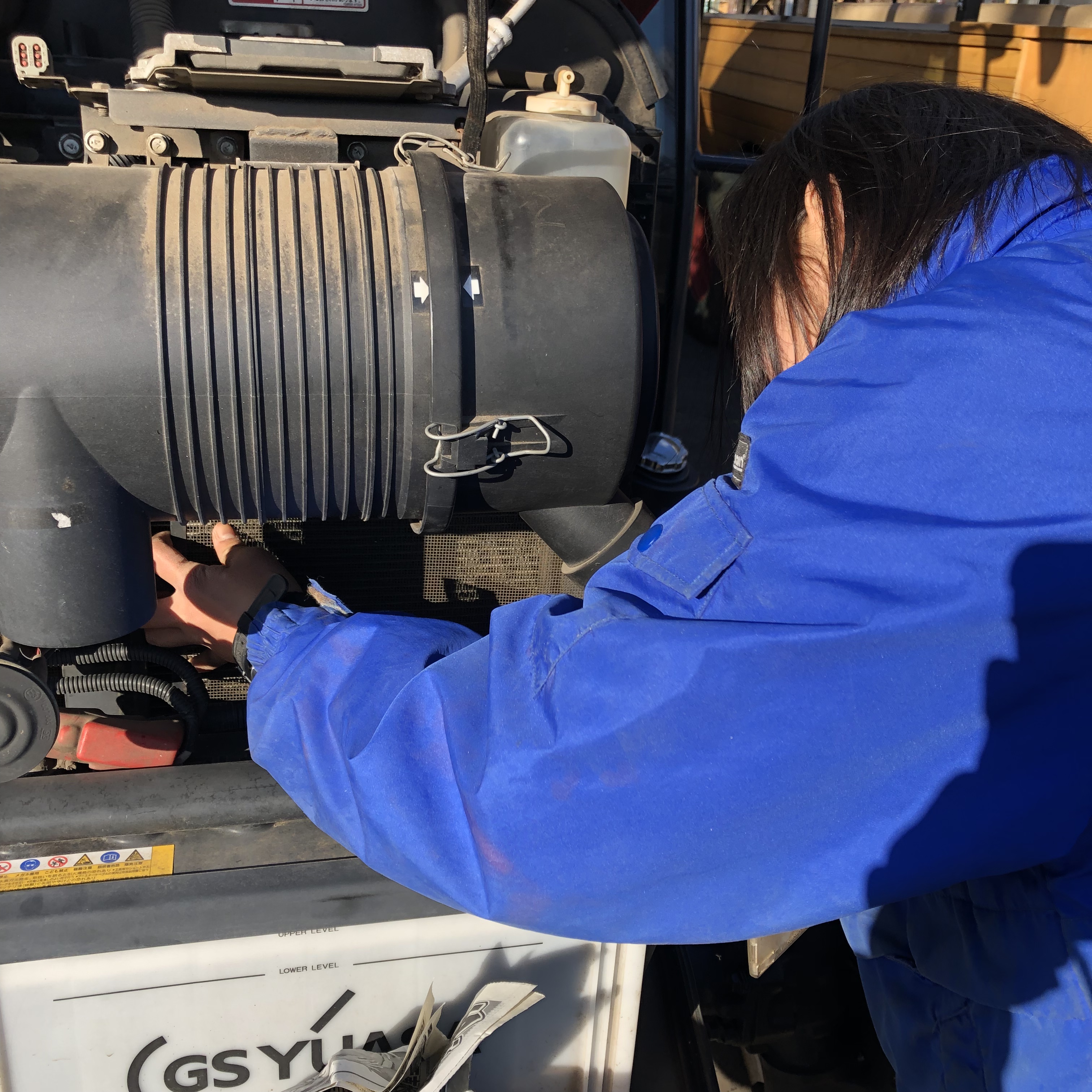 オイル確認から始まり、各種フィルター掃除&チェック、クーラント、バッテリー液、各所グリース、ベルトの張り、ブレーキ・照明系、空気圧、摩耗や破損等、前回メモしたものを片手にチェックを進める。