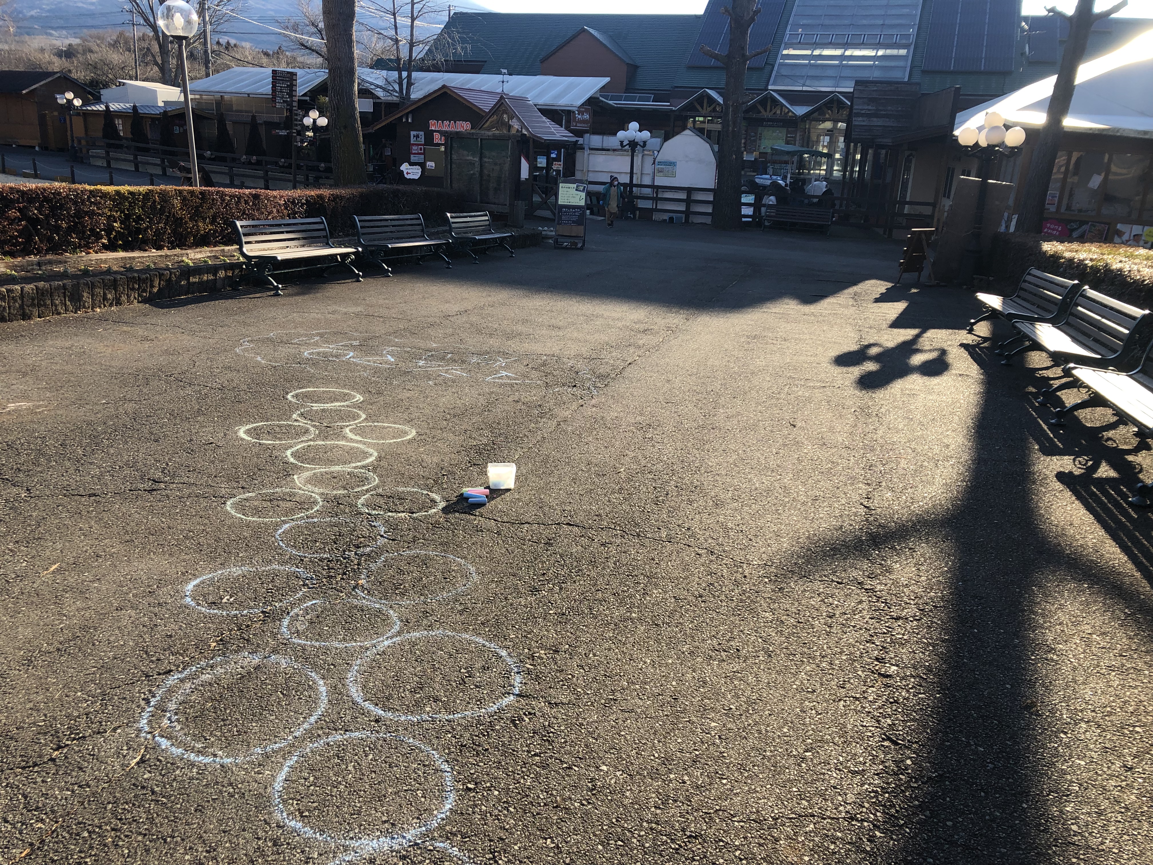 楽しんでもらいつつ、温かいたき火や食の体験工房があることをお知らせするチョーク描き、