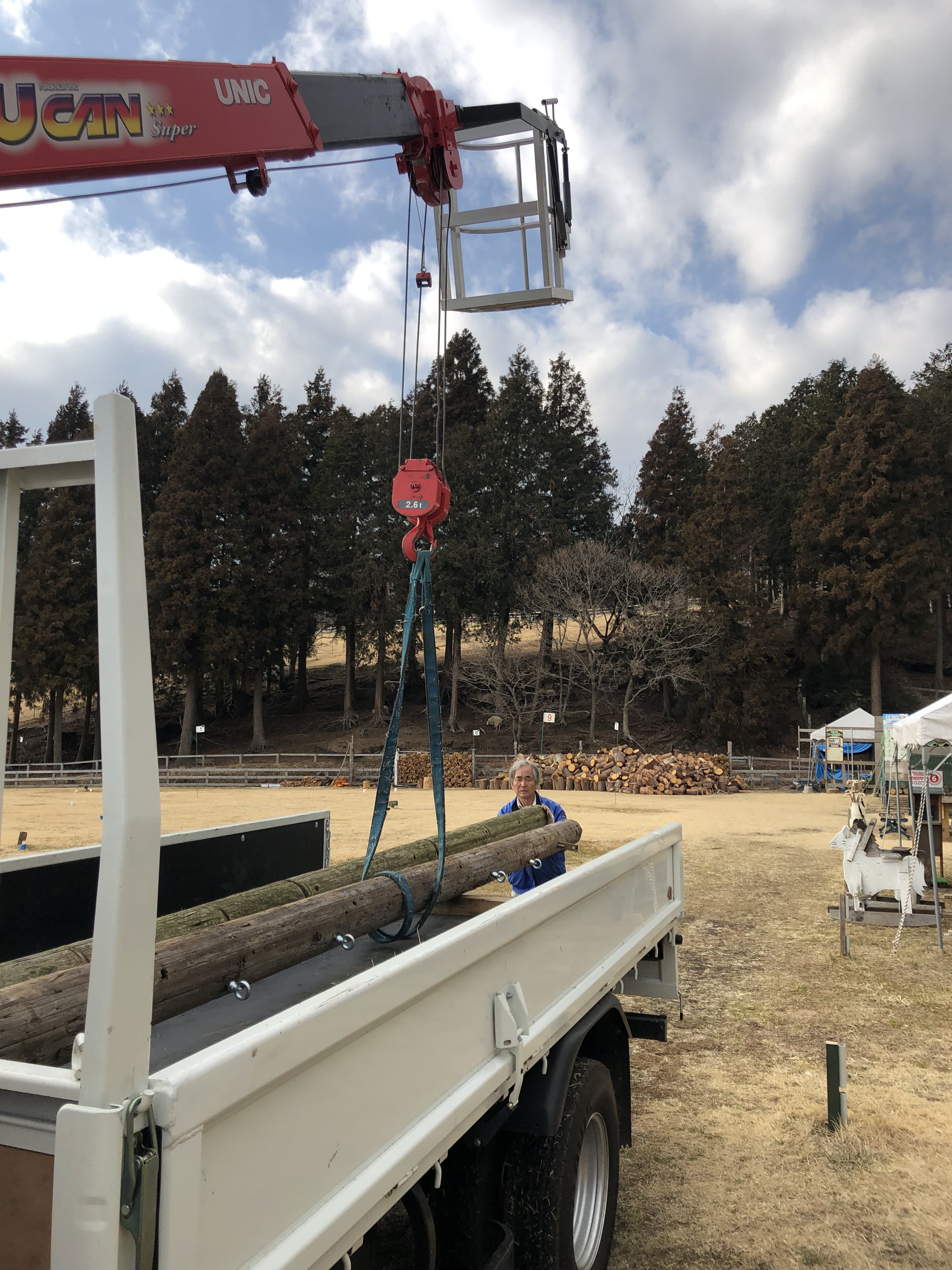 ものづくり工房前のブランコ、上の柱がダメになってきていたので交換作業(30年以上使っておりました)!