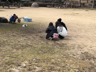 ウサギを散歩するというより、のびのびさんぽしているのを見守ったりしながら触れ合う内容です。