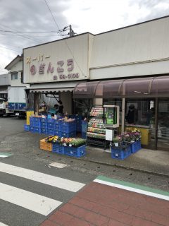 スーパーぎんこうの前を通りながら、木製パレット(20枚ほど)を取りに行く。