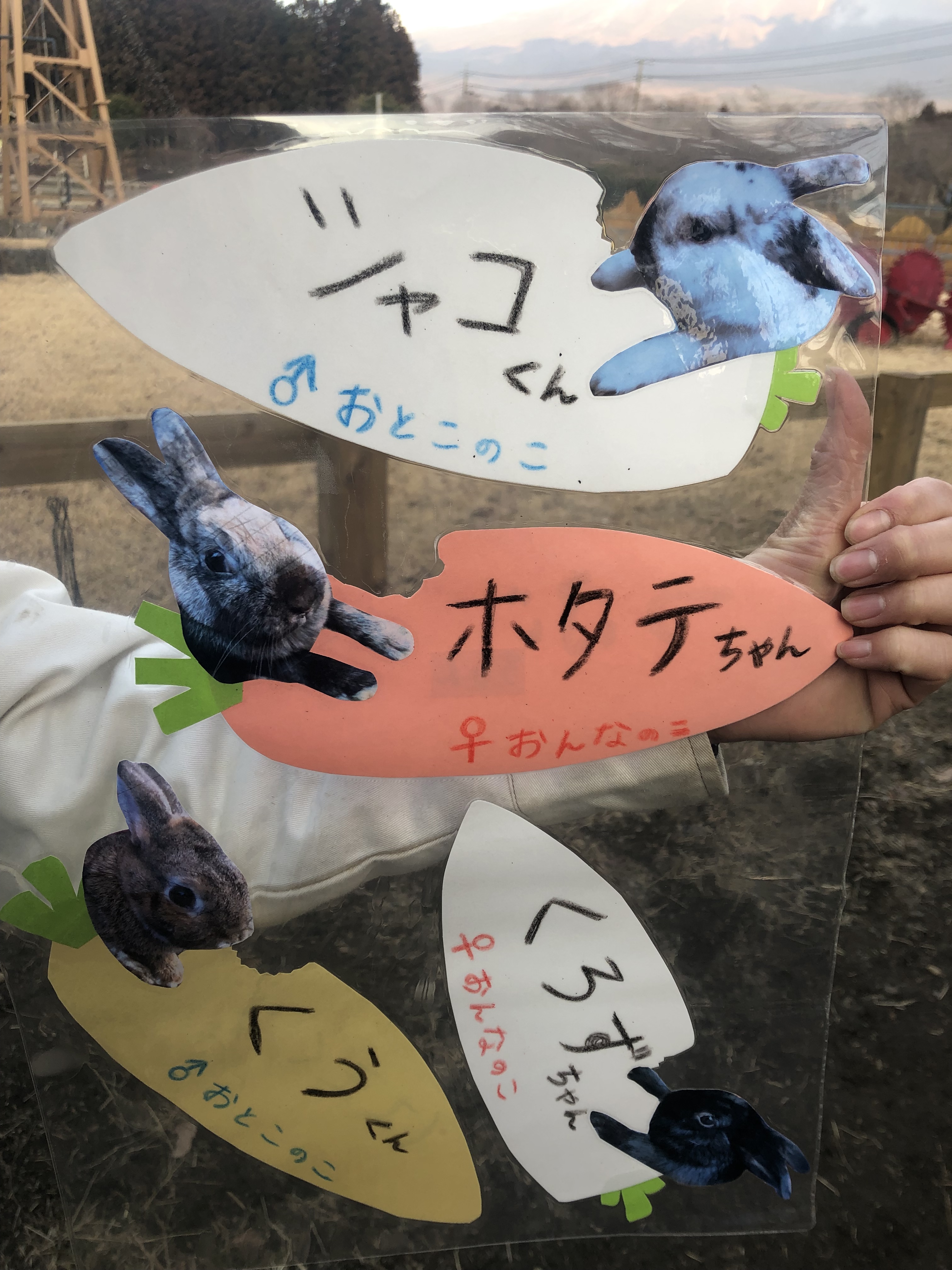 ヤギお姉さん、ミツイお兄さんが心を込めて作ってウサギさんの名札💛