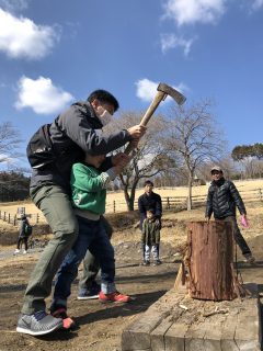 子供さんはこんな形で一緒に体験、本気マキワリ。