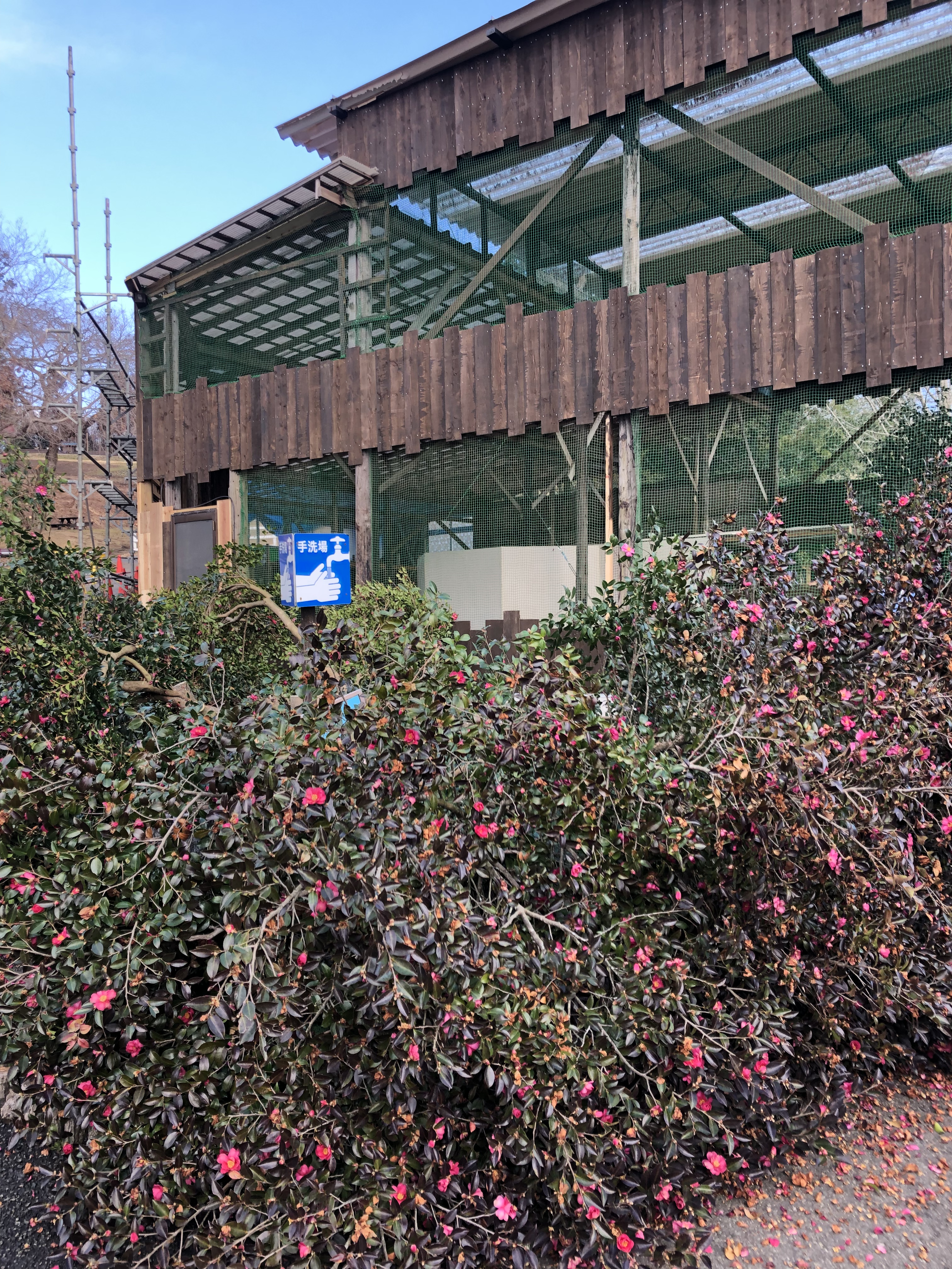 旧バードケージ、現「うさもるむら」前のツバキ(サザンカ?)を