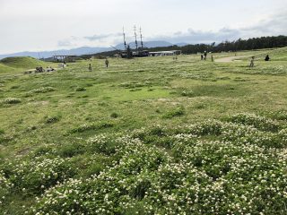 シロツメクサが満開ひろびろ花畑で、花の冠などを作りまくって遊ぶ。