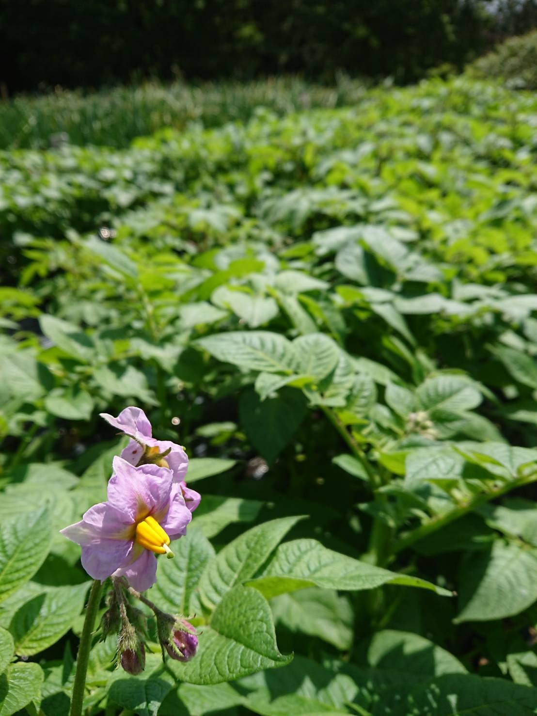 ジャガイモの収穫を6月に控え、花が咲き始めました。