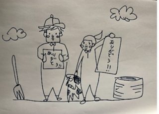 イノウエお兄さんがコイノボリをせっせと揚げてくれておりました。