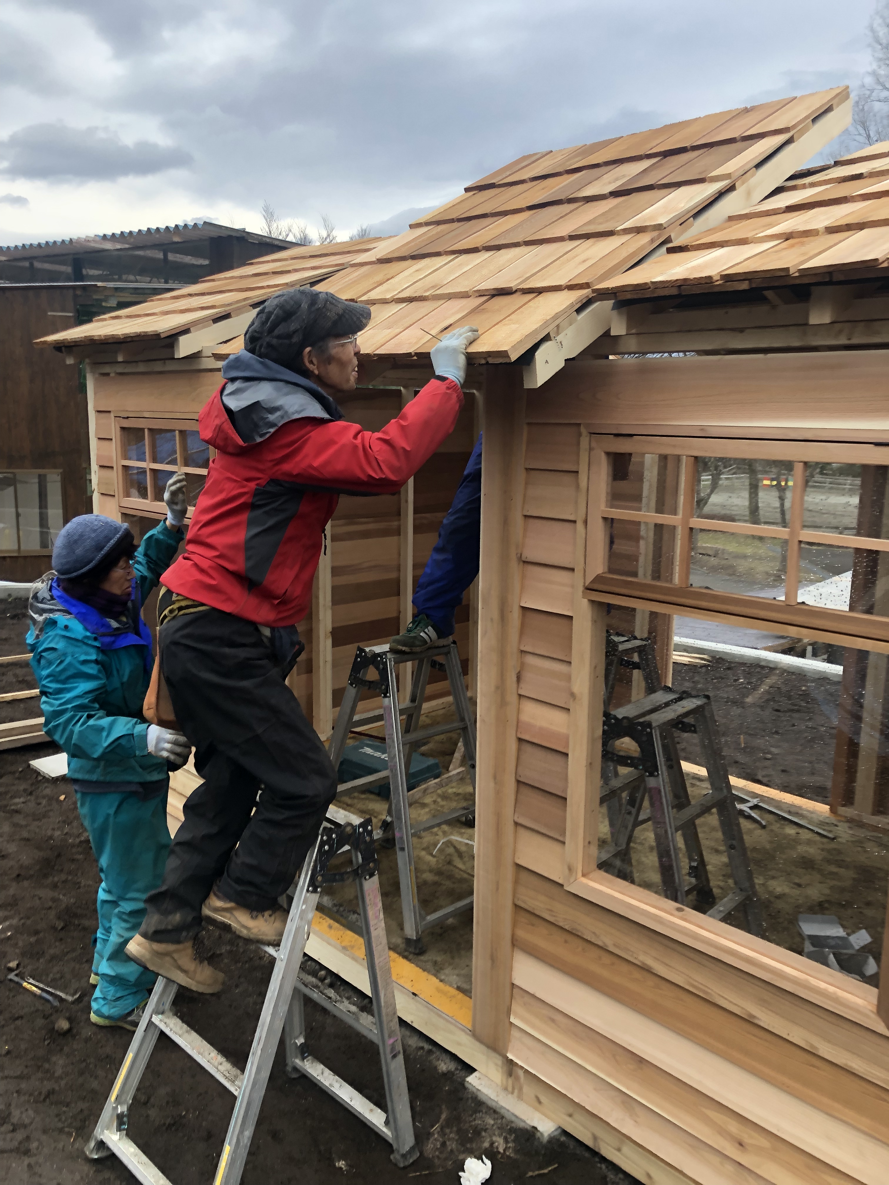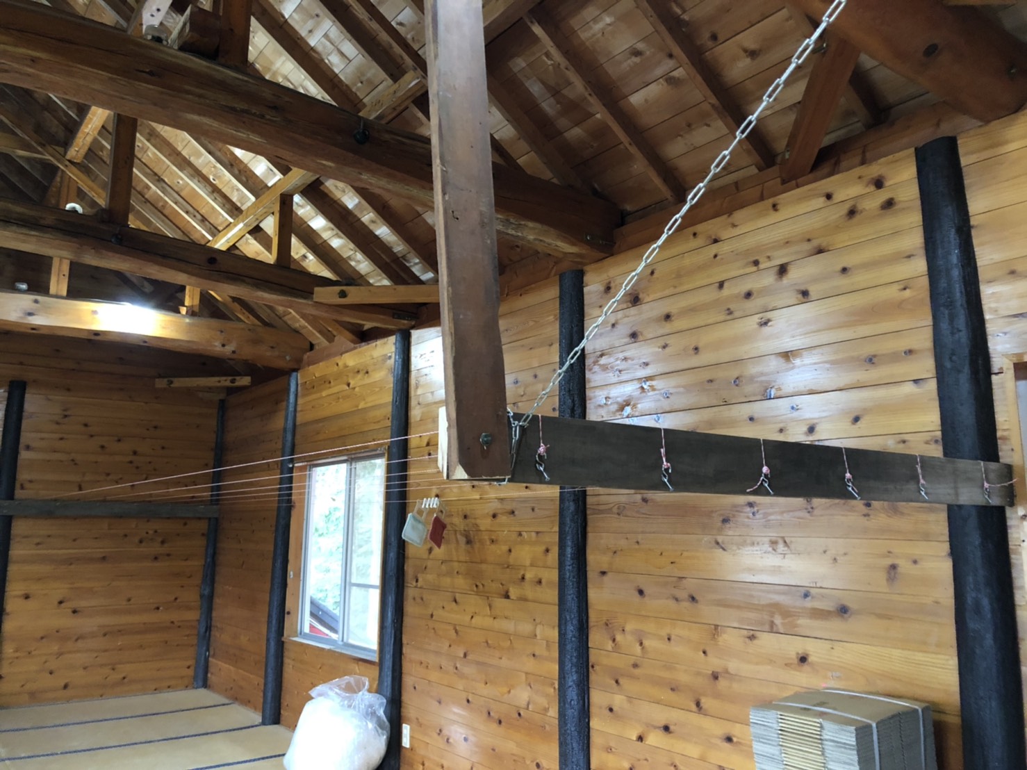 その中で使うタオル的なものを干す場所を、自分たちで作成。