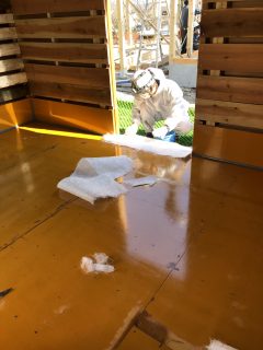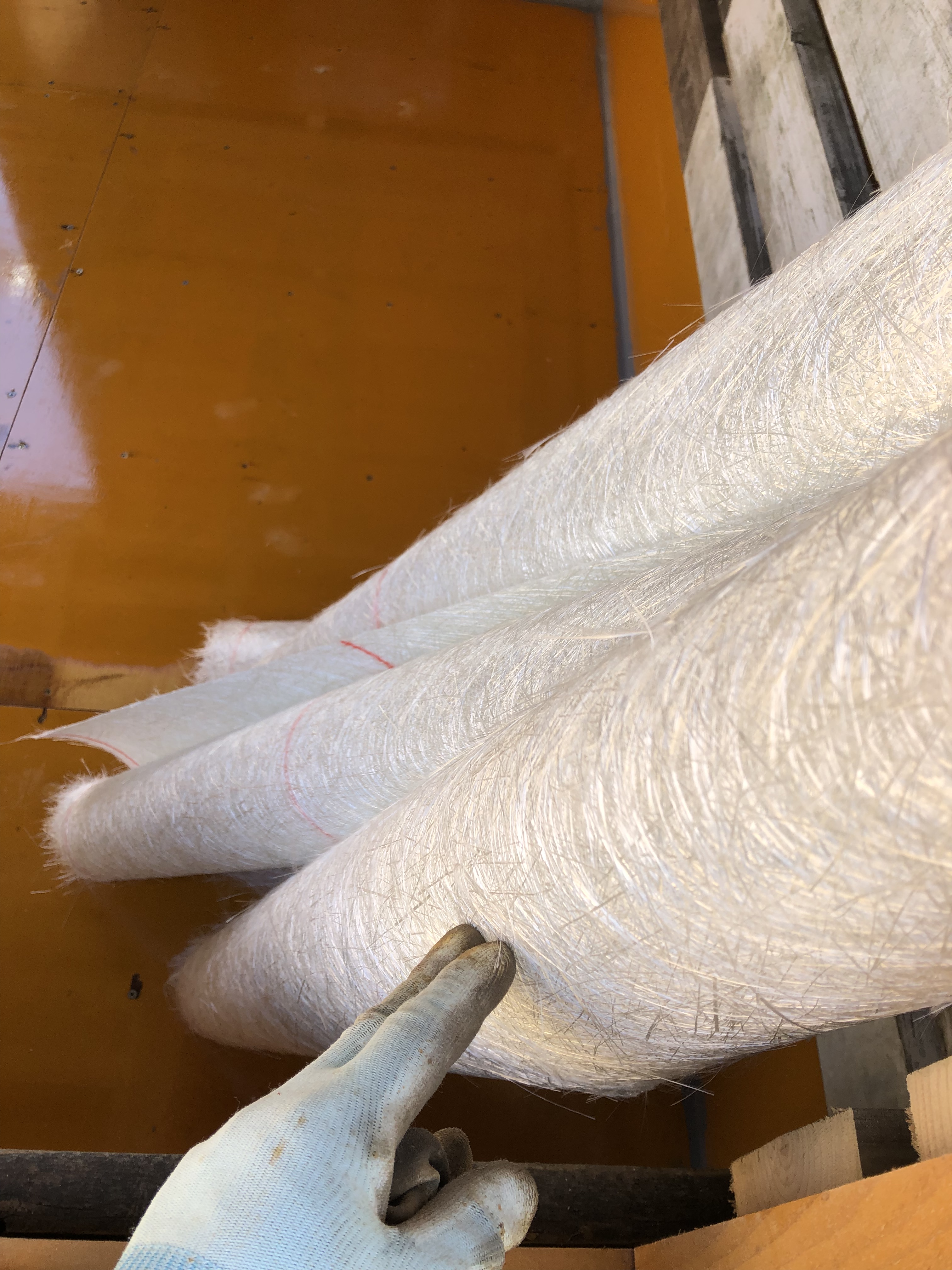 まずこのガラス繊維のシートを敷くことから始める。
