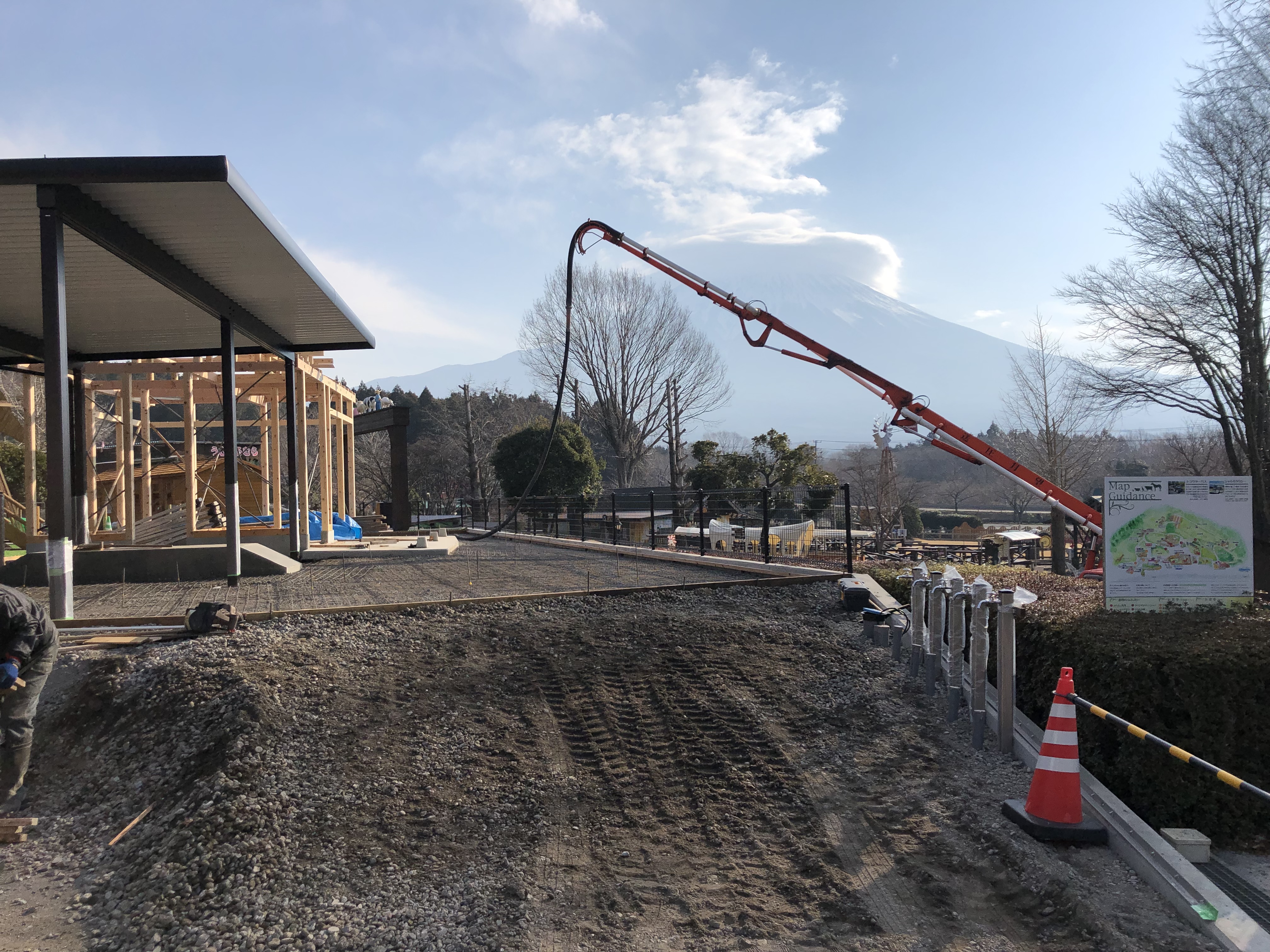 新牛舎と乳しぼり会場にコンクリートがゴウゴウンと流し込まれる土曜日。