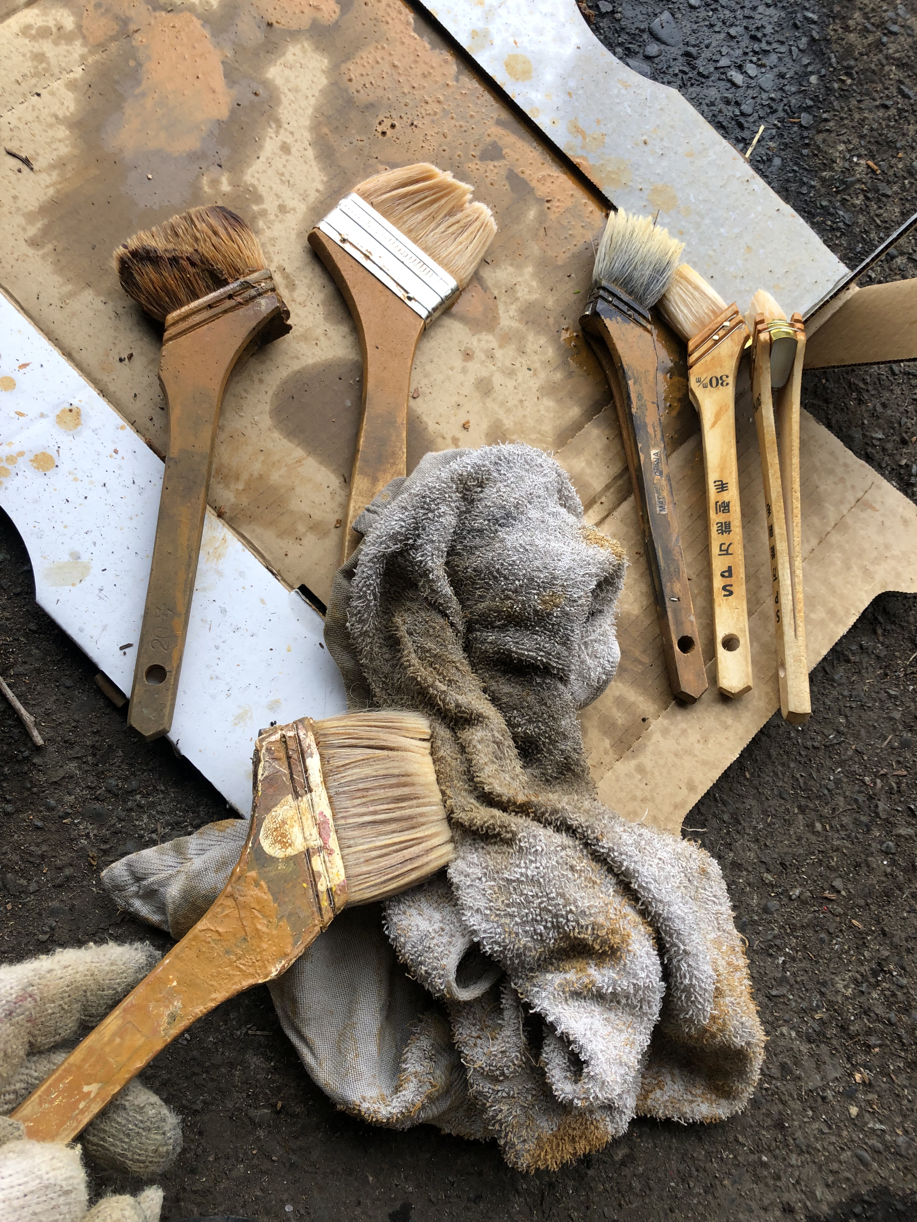 シンナーのしみこんだボロ布で、ハケ先をふわっとさせるようにパパッと拭き上げて完了。