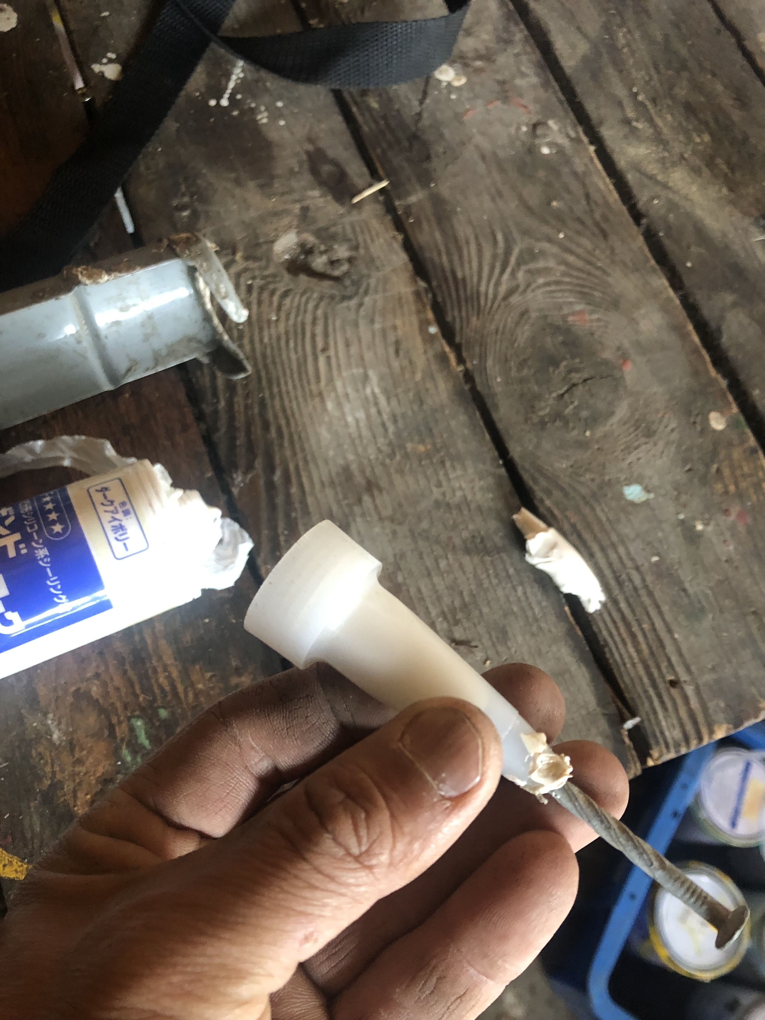 時間がたつと、コーキングの口部分の中身は固まってしまっています。