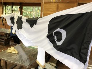 1~2代目のウシノボリは、一番上の吹き流しに「頑張ろう東北・頑張ろう日本」って大きく刺繍しました。