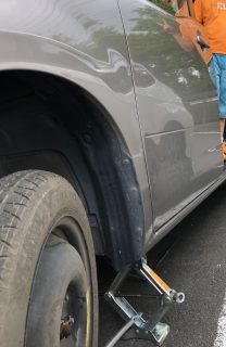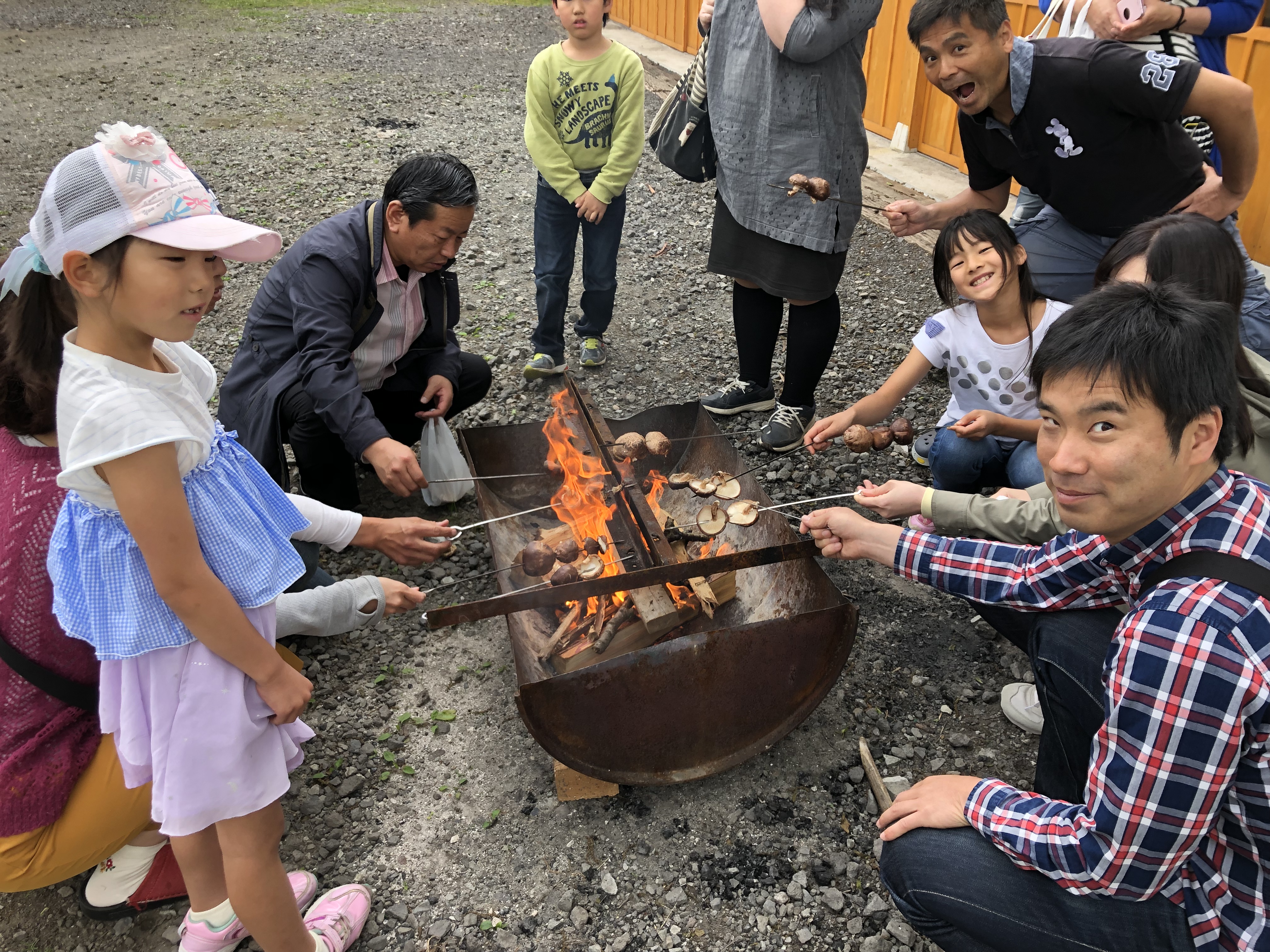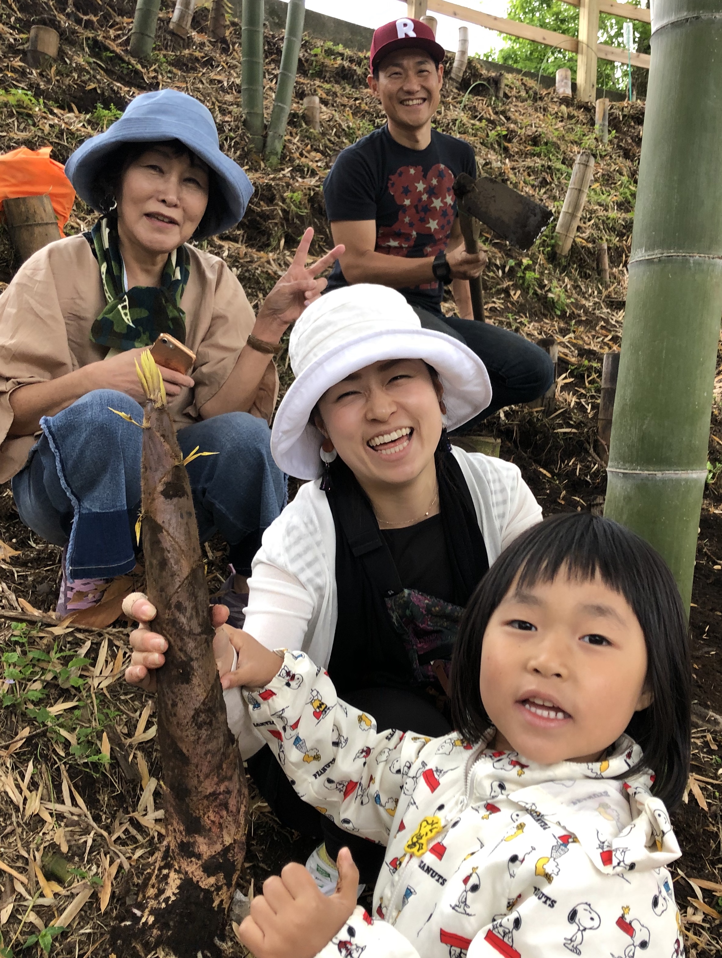 ちょうど、タケノコホリが終わる瞬間に「タイヤがパンク!(予備タイヤと)交換希望!」という要請が駐車場からきて、その20分間でキッチリ終える。