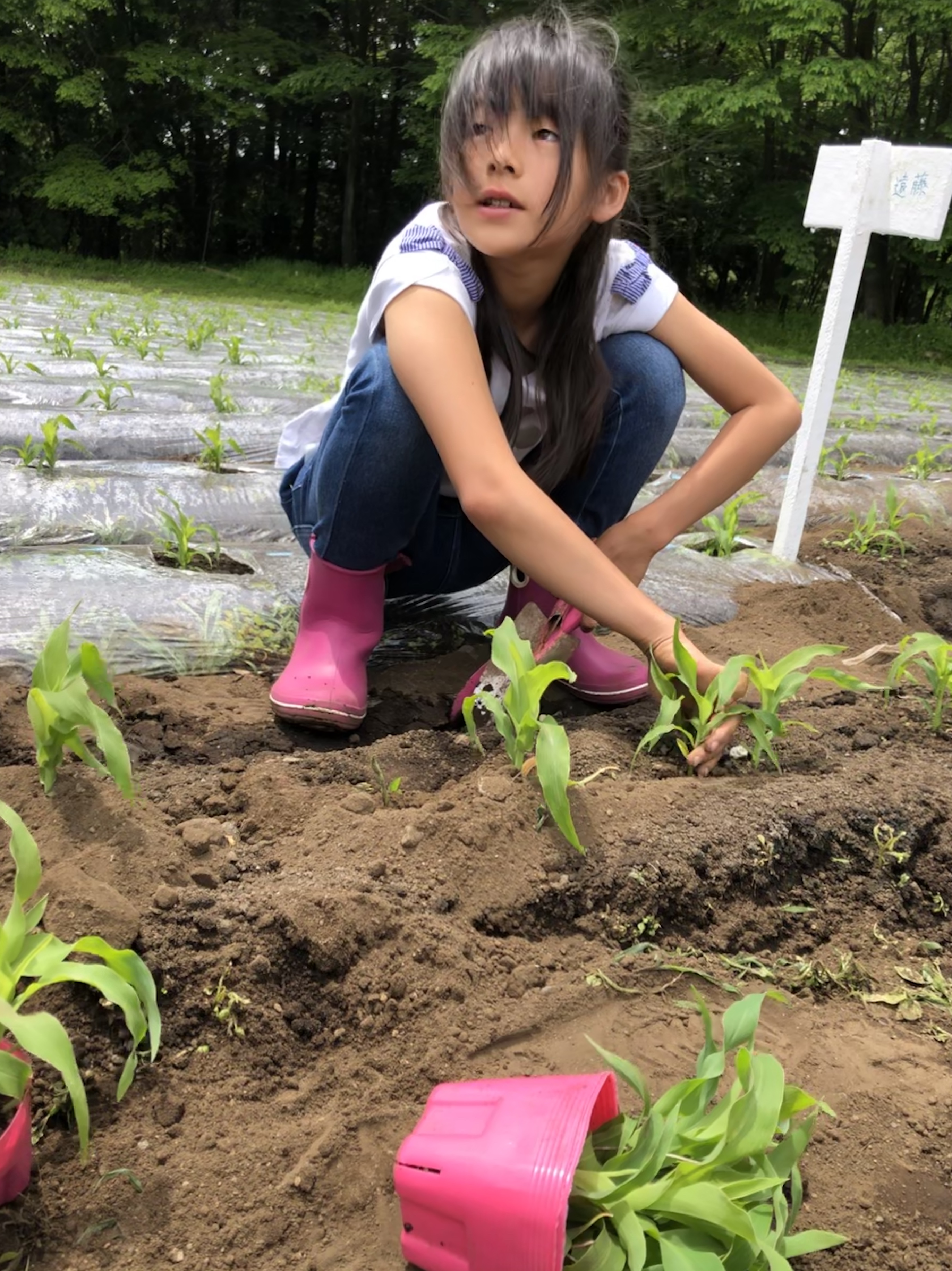 トウモロコシお世話+ラッカ・サツマ畑の受入中!
