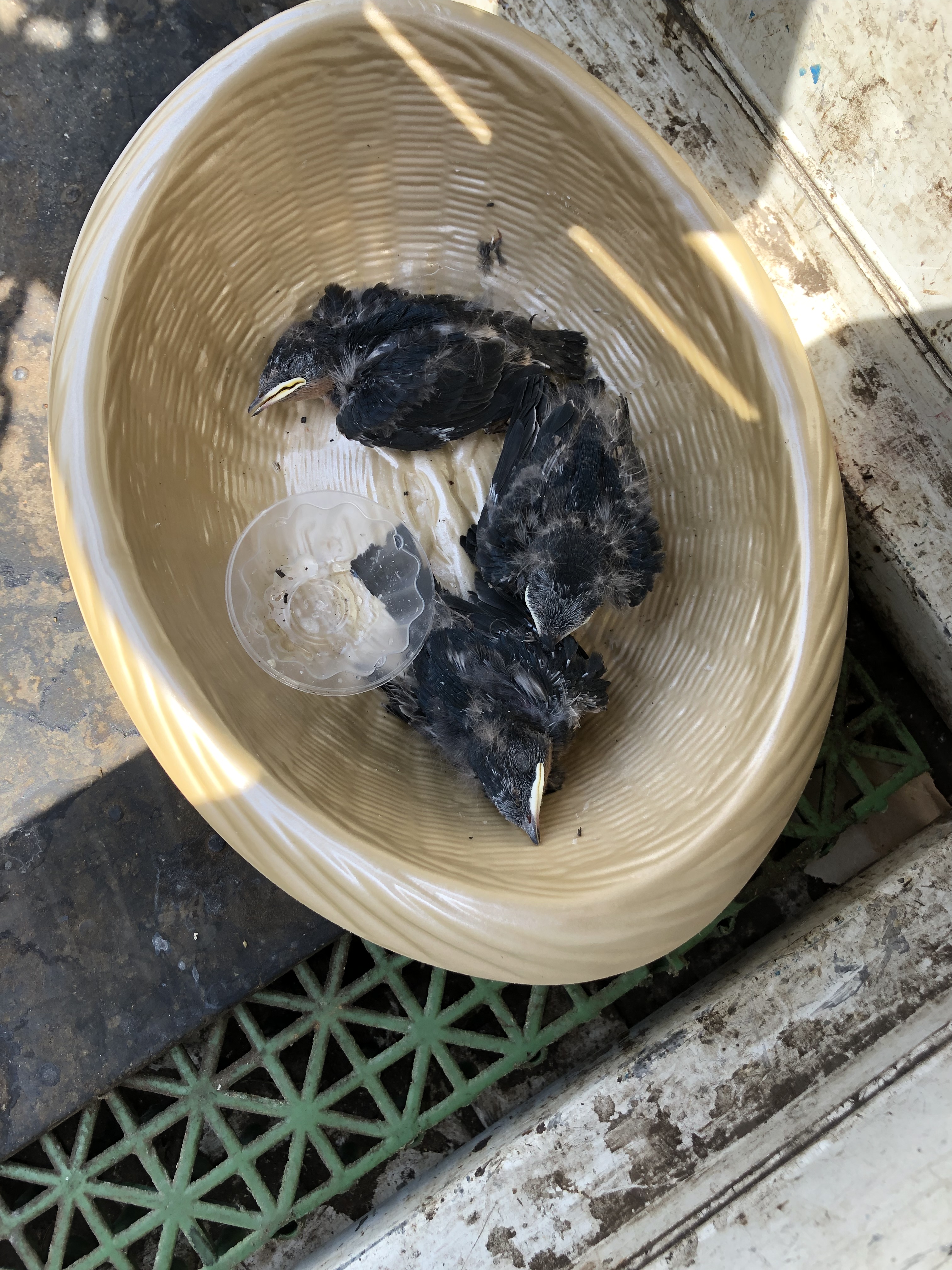 ちょうど孵化したヒナが4羽ほどいる、別のツバメの巣に、押し付けることにした。