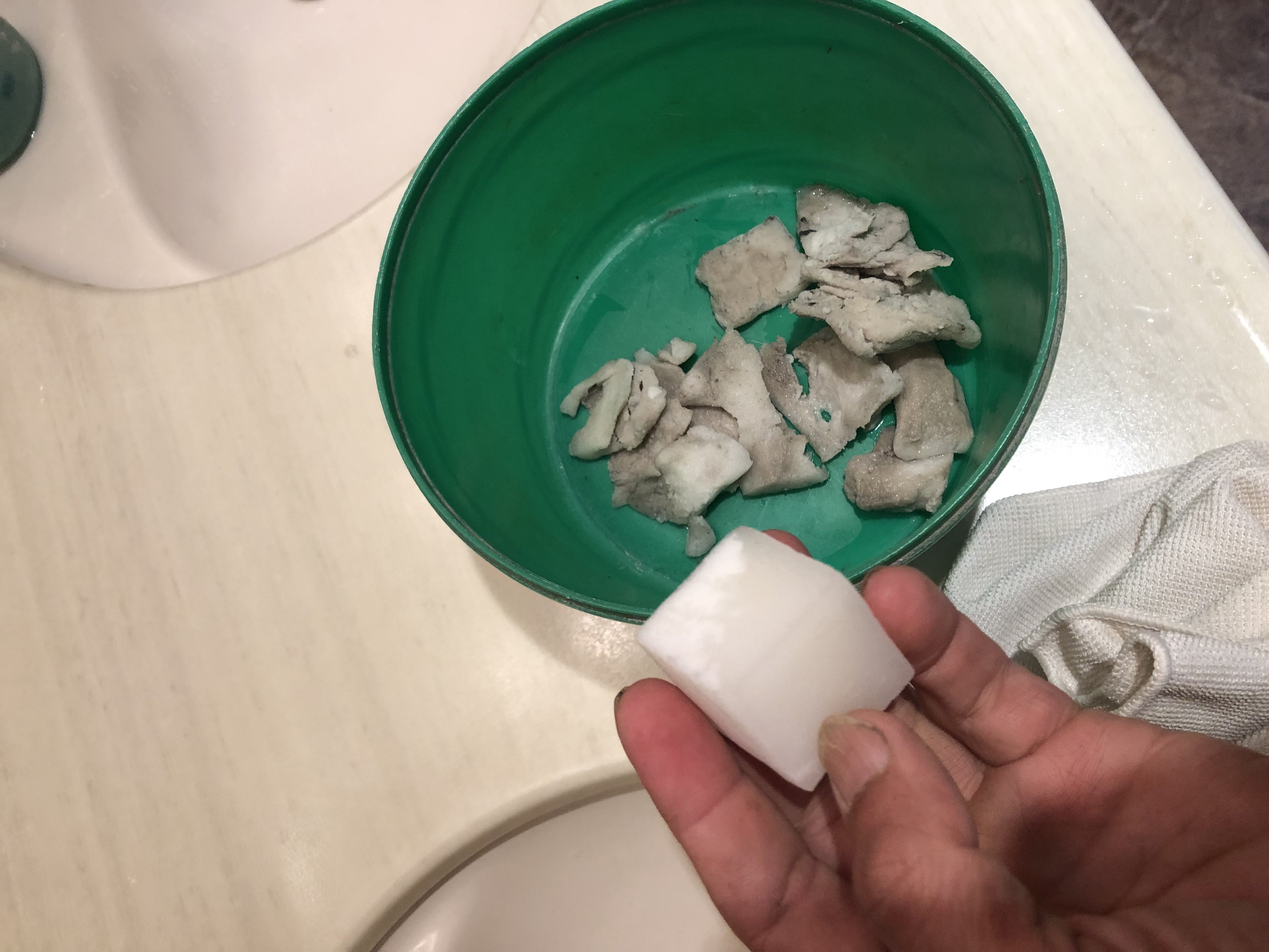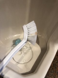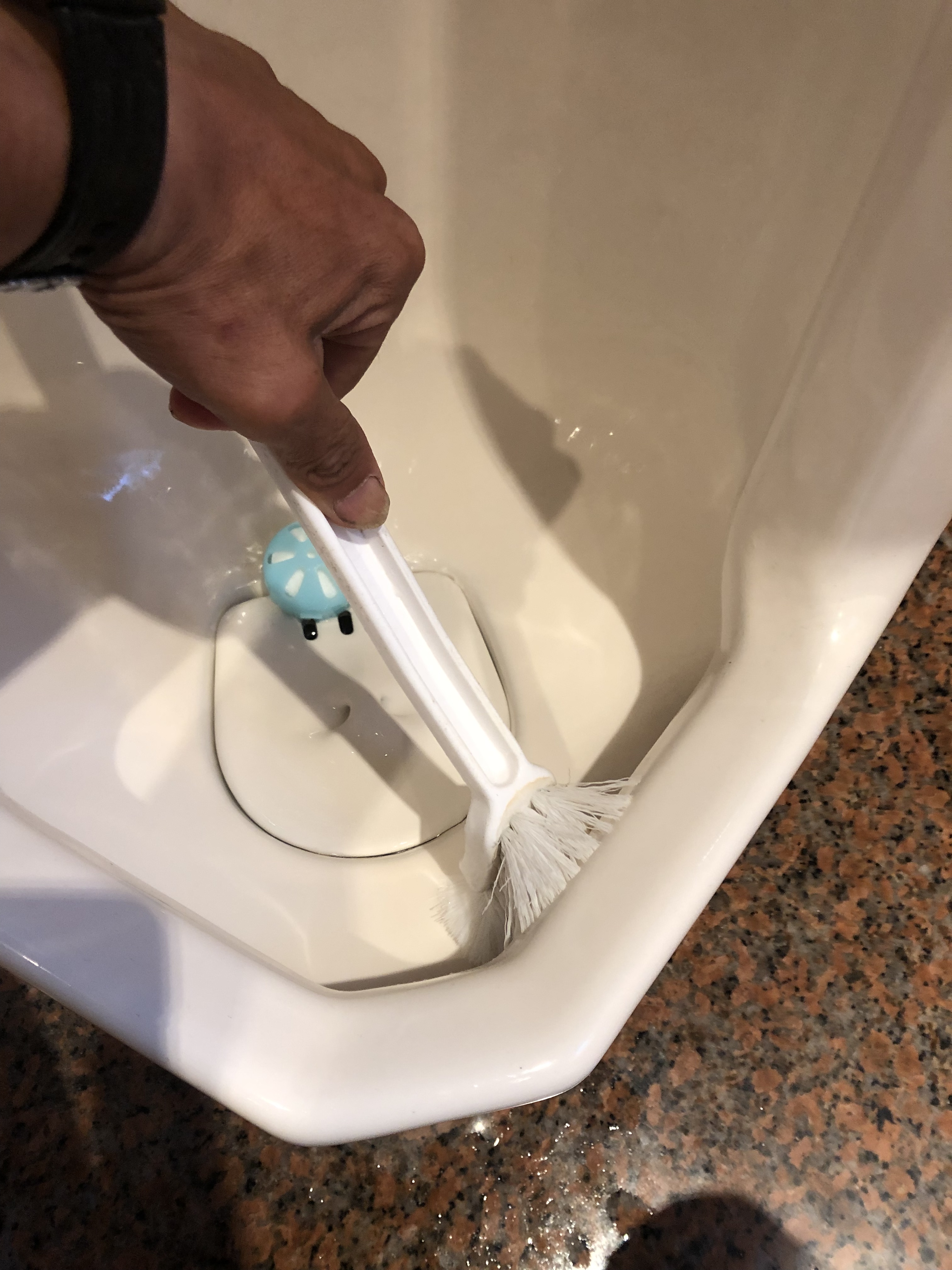 消毒ポンプの首回り、週1回はメラミンスポンジでこすりましょう。