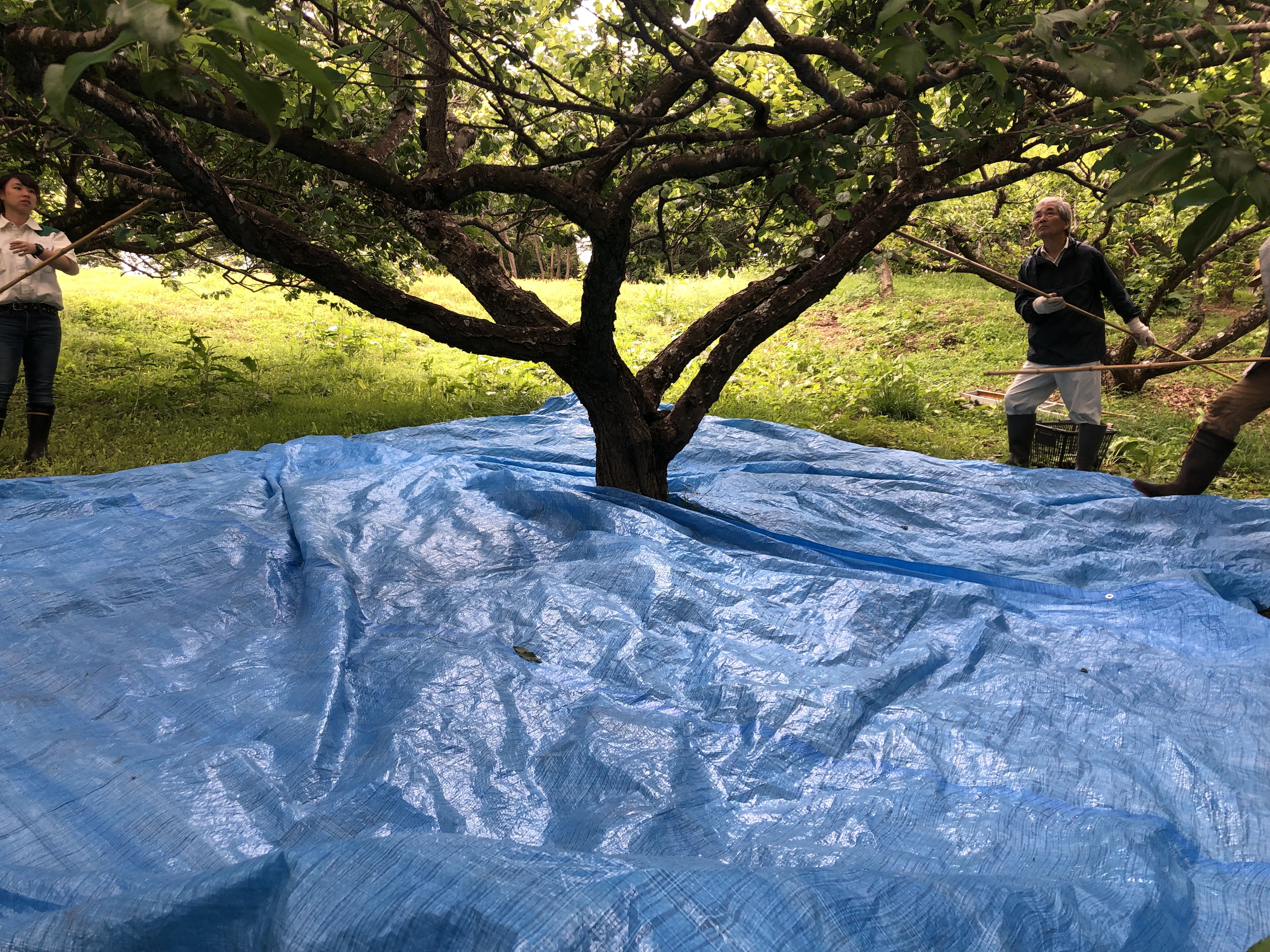 という事で、昨日はまずシートを下に敷き、棒でパシパシ落とす。(全ての木)