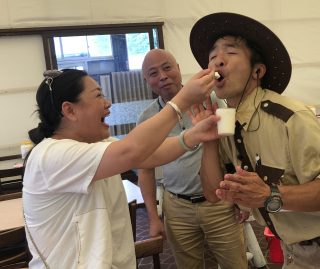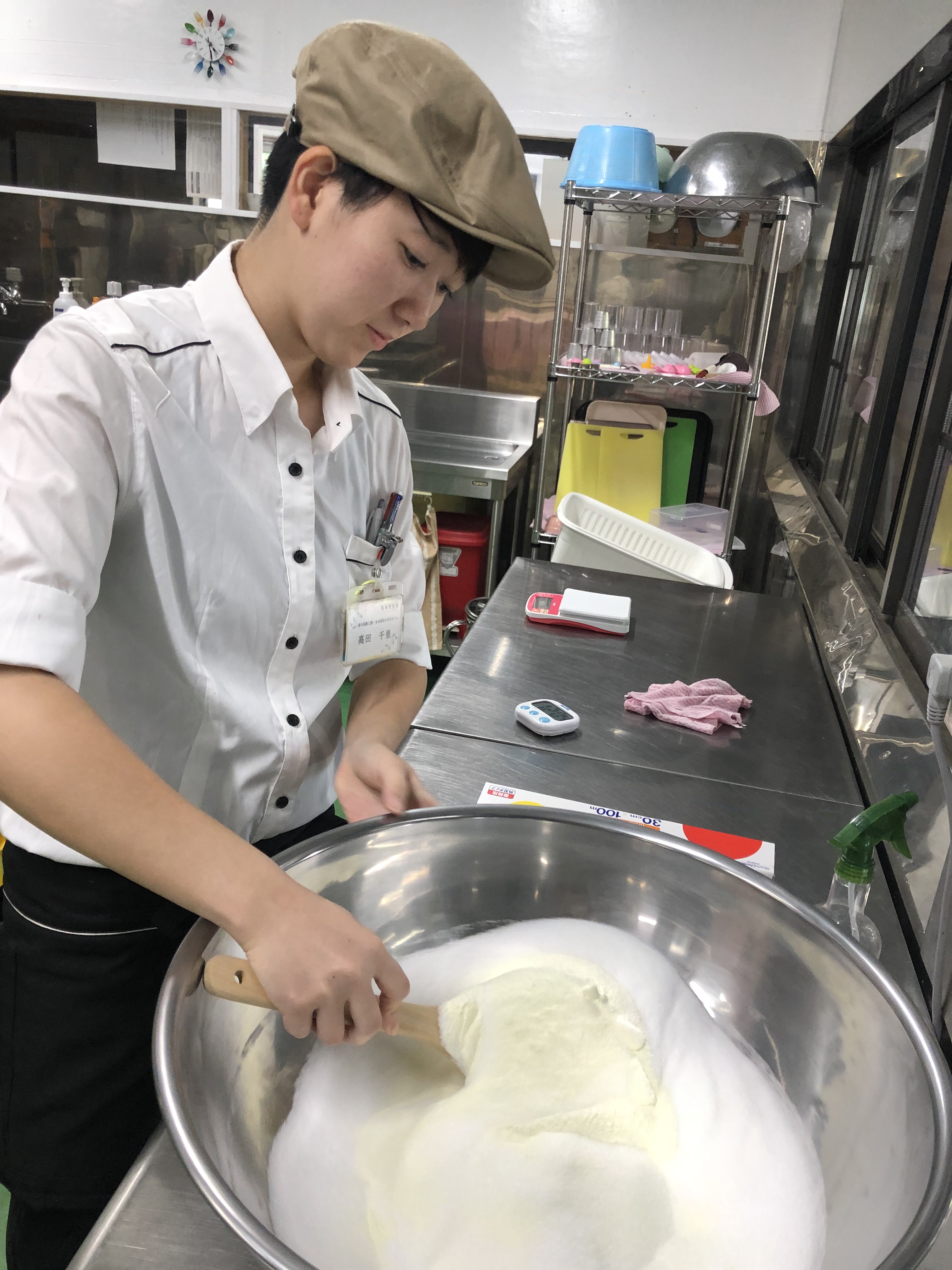 タカダお姉さんが、アイスクリーム作りの元を作る。