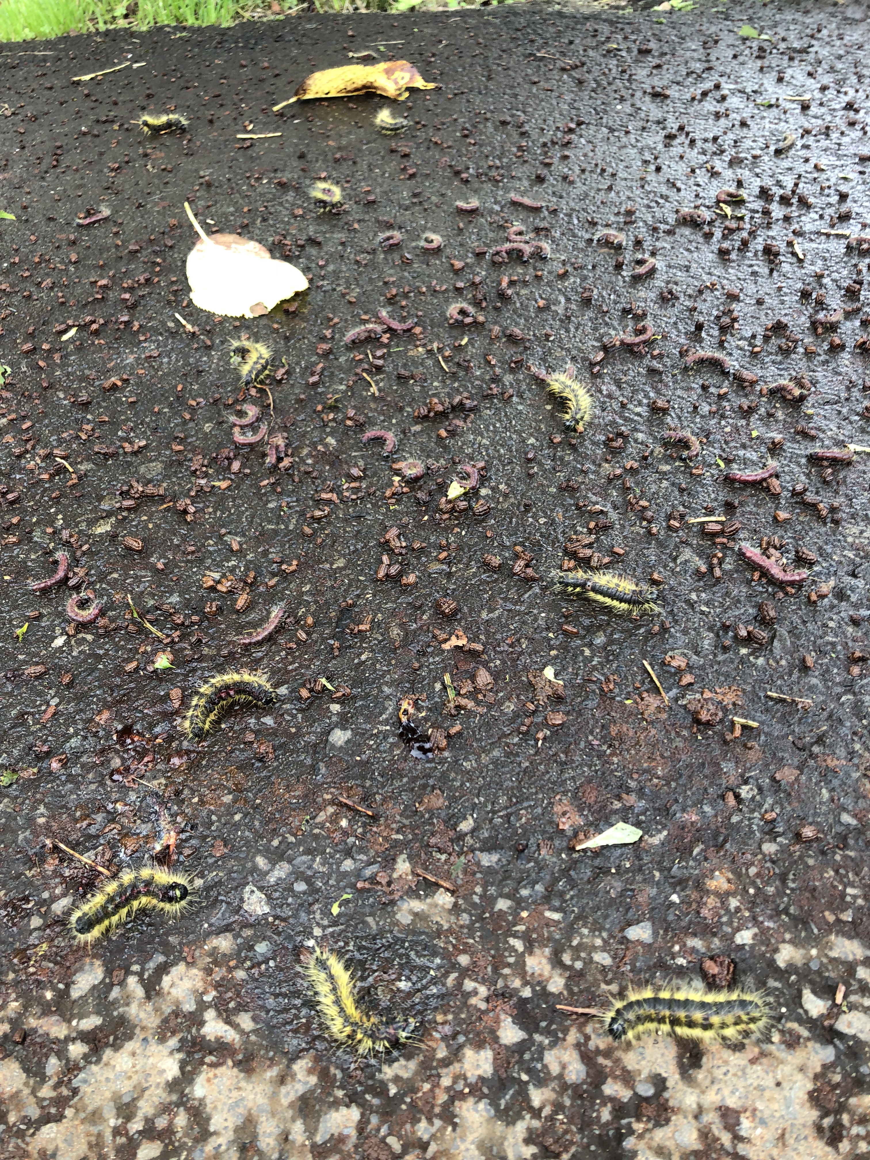 変な話になりますが、この写真の黒い体、黄色い毛は「モンクロシャチホコ(蛾)」の幼虫。