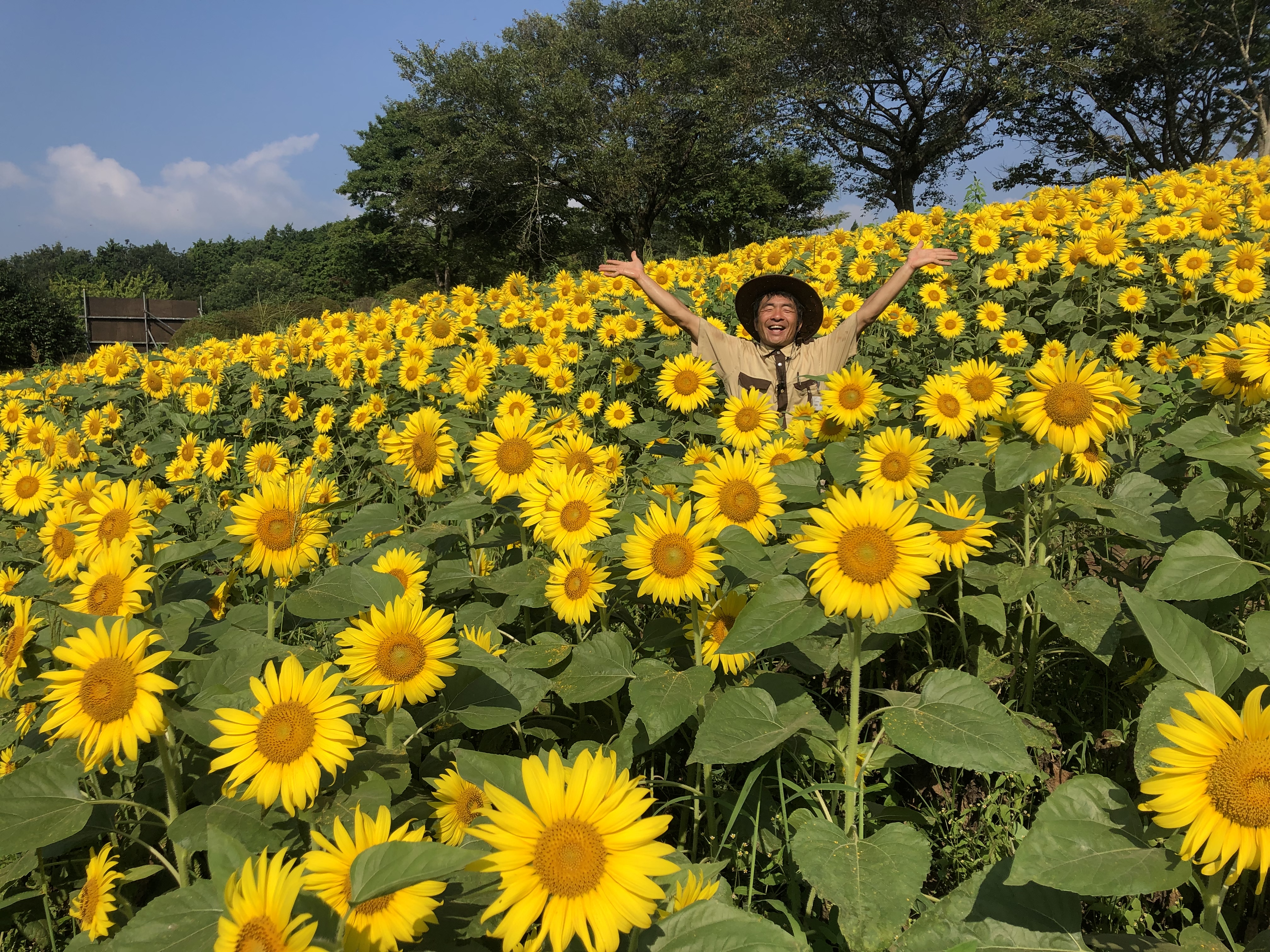 美しいヒマワリに、オッサンが浮きまくっている・・・