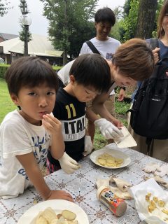 「たき火でポテトチップス作り」