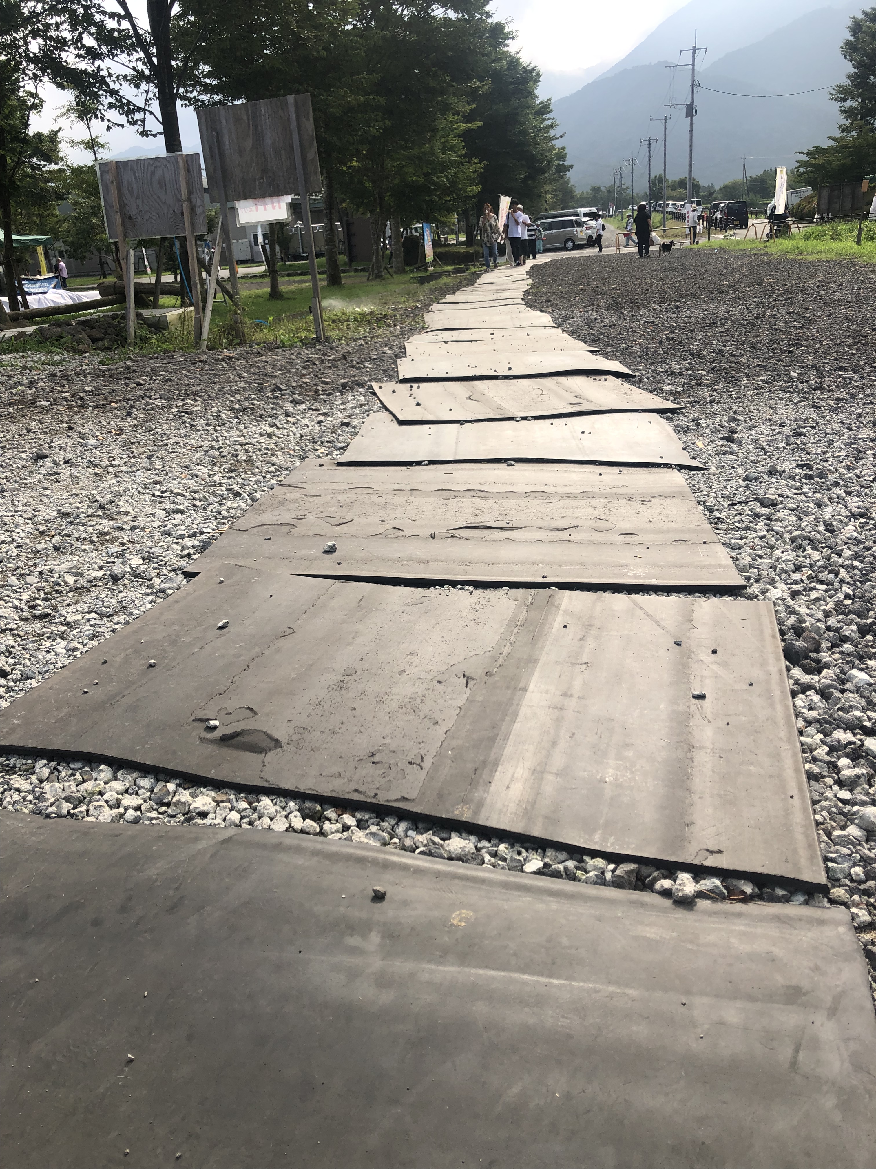 開場までのジャリ道、ゴムマットの道が1本。