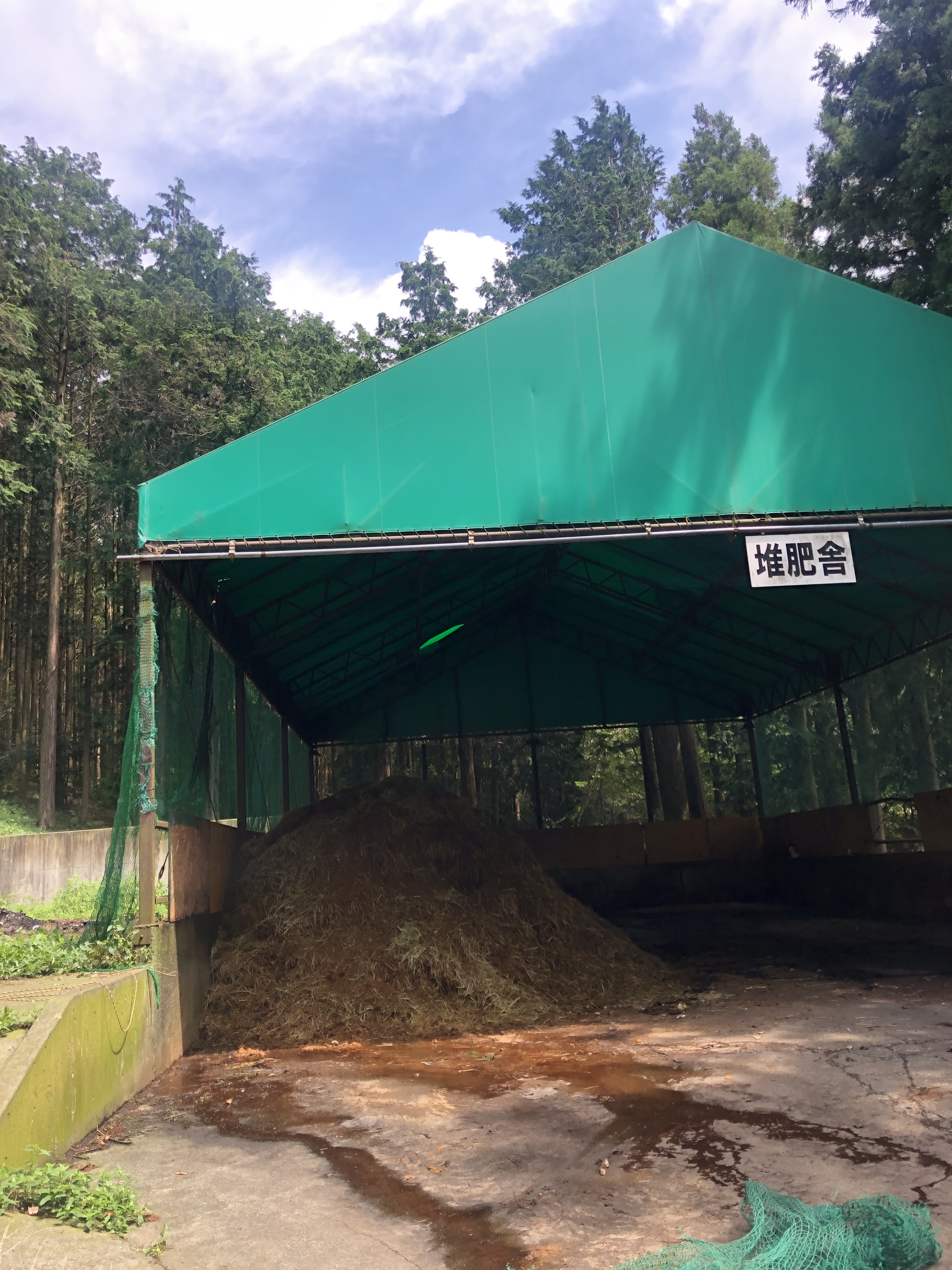 昨日のメイン仕事は堆肥舎のカラスよけネット補修作業。