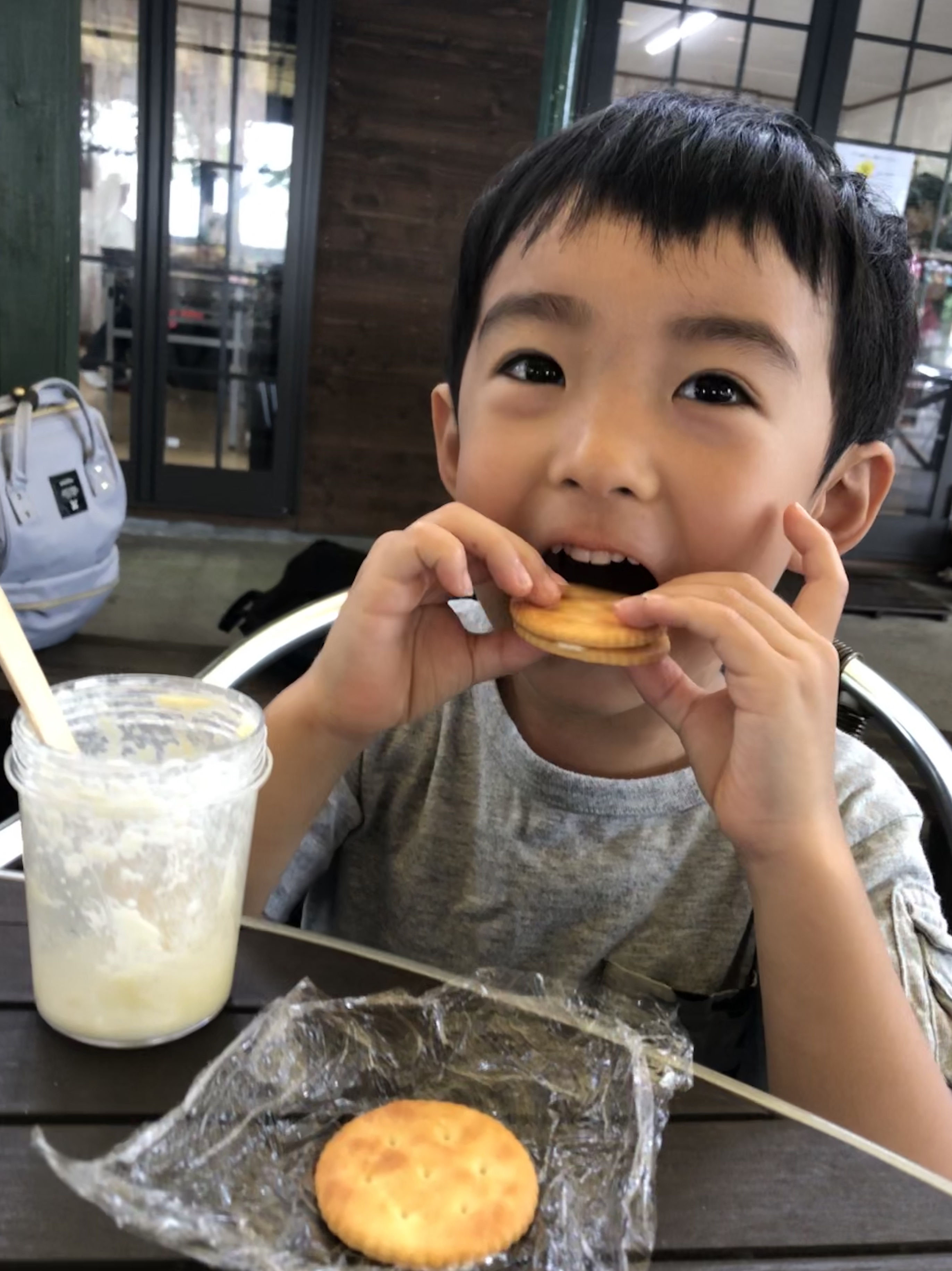 たまたまその間に来てくれたアイちゃんたちとバター作り体験w