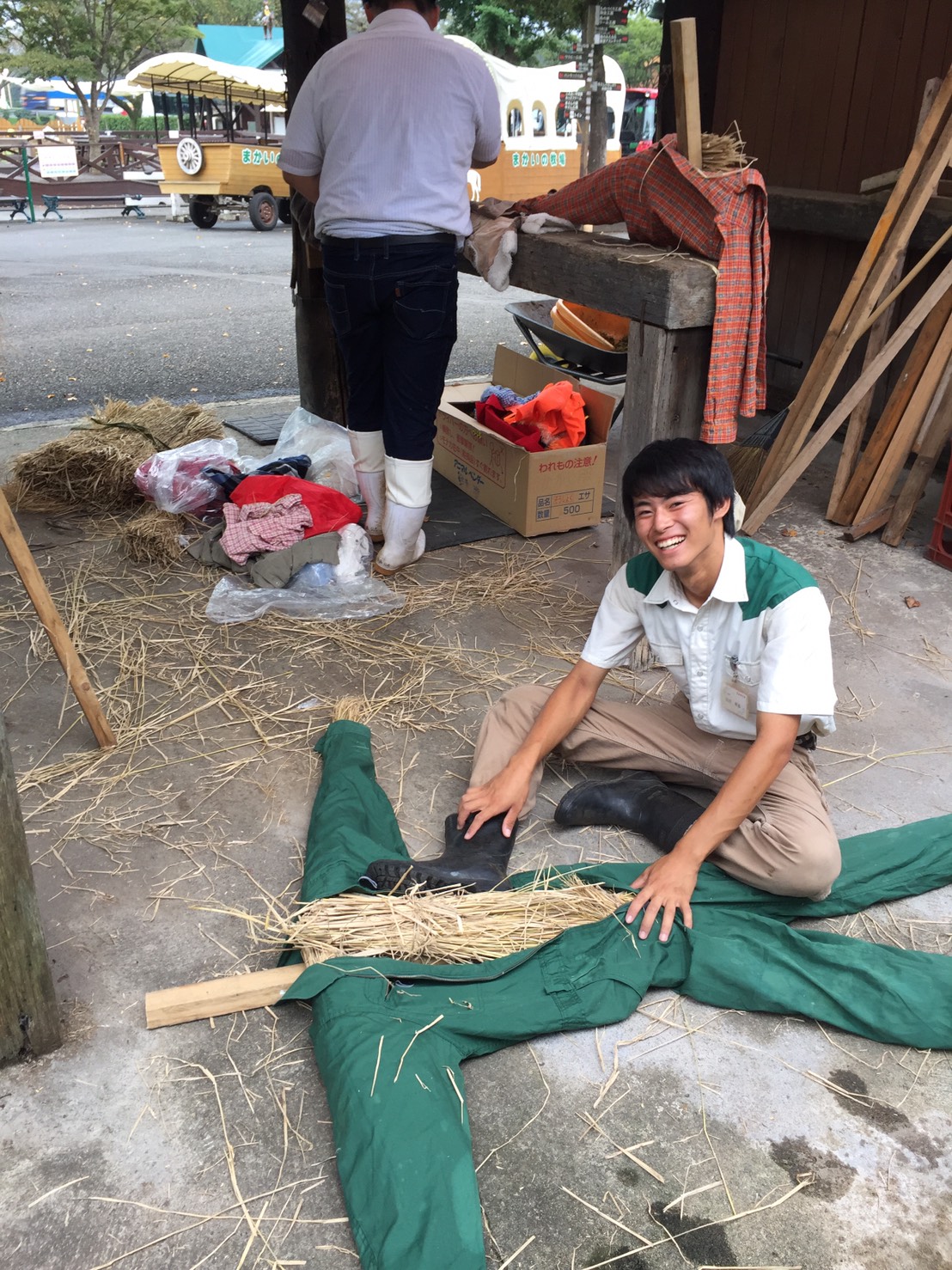 案山子(カカシ)を作るイワタお兄さん。