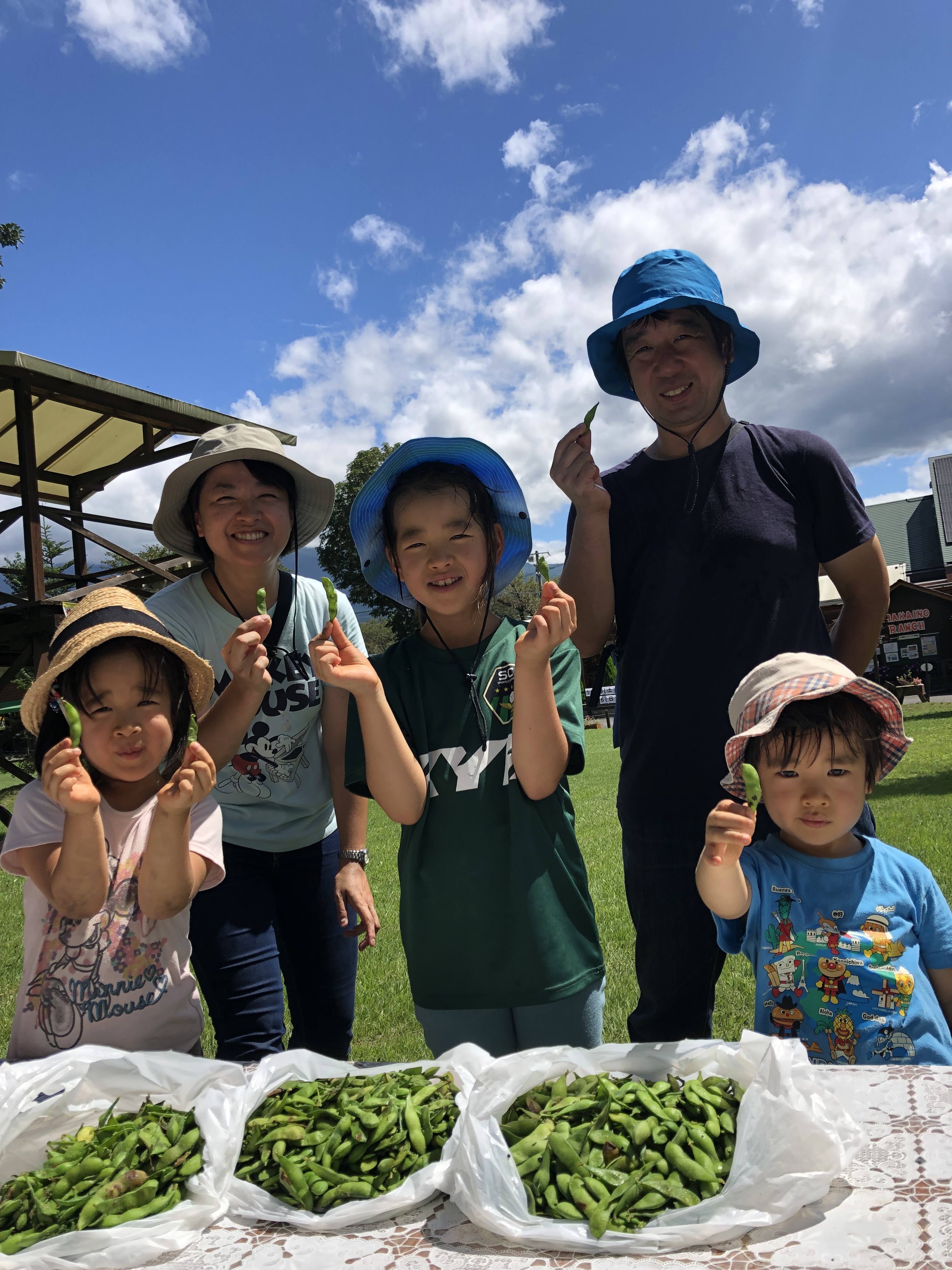 落花生堀に参加された方に声をかける形でエダマメ収穫開催。