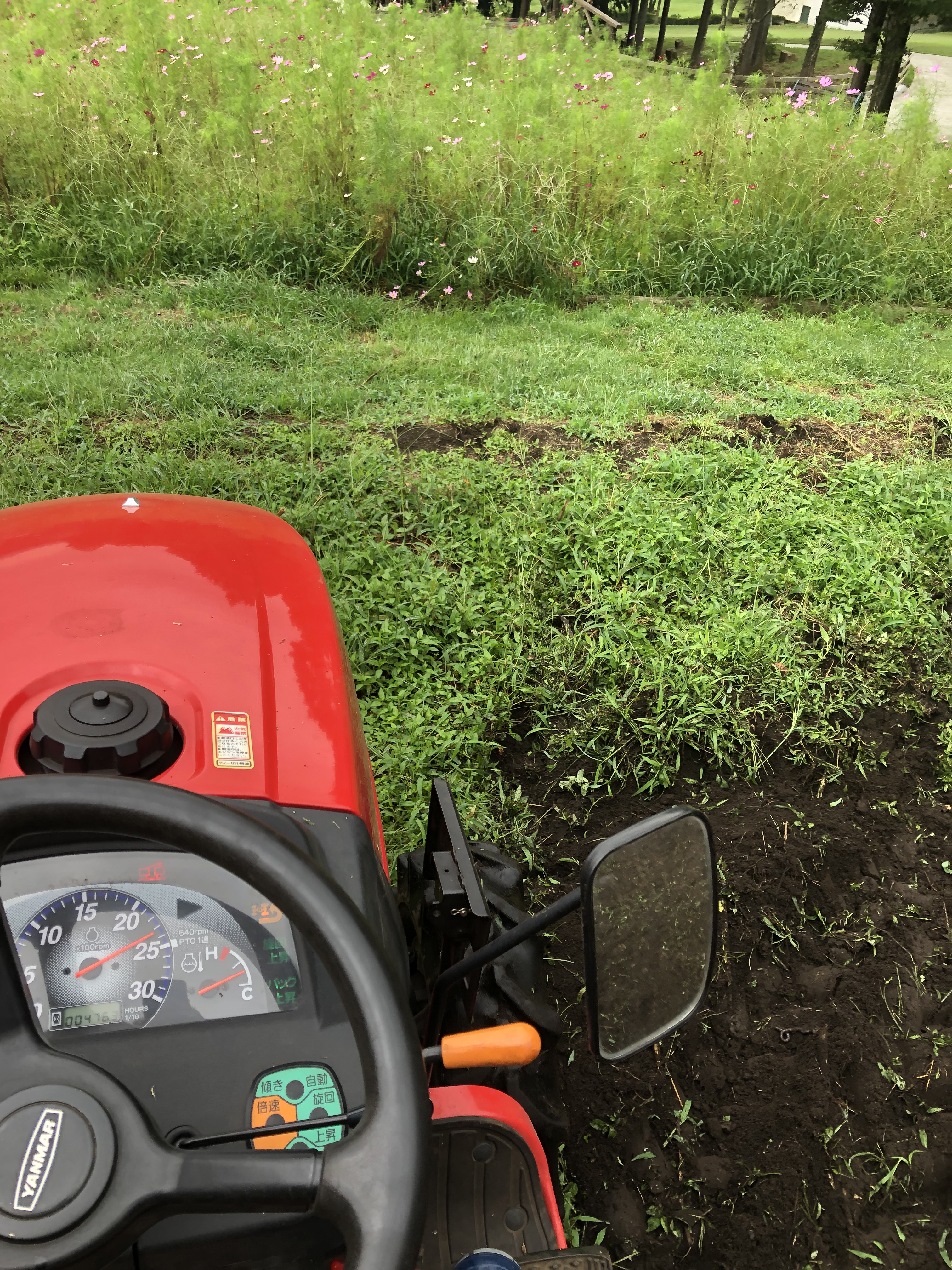 山の、花が終わったところを耕す。
