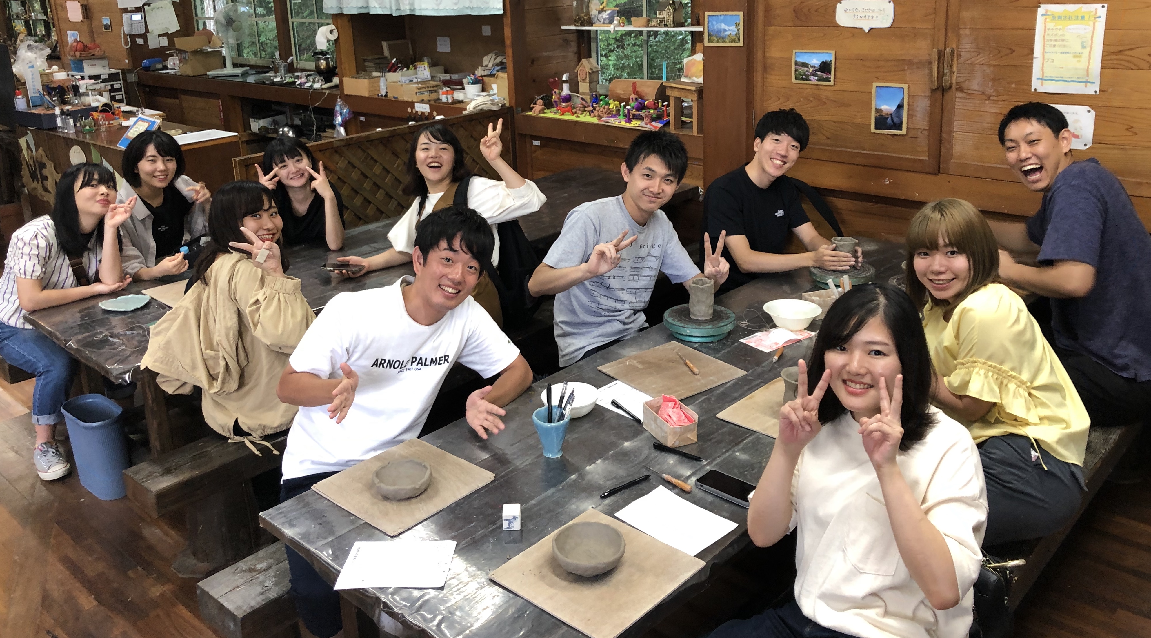 お兄さんお姉さん達が、陶芸体験でワイワイw
