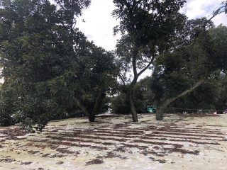 ここは食の体験工房前、ドングリの木のテラスの「屋根の上」・・